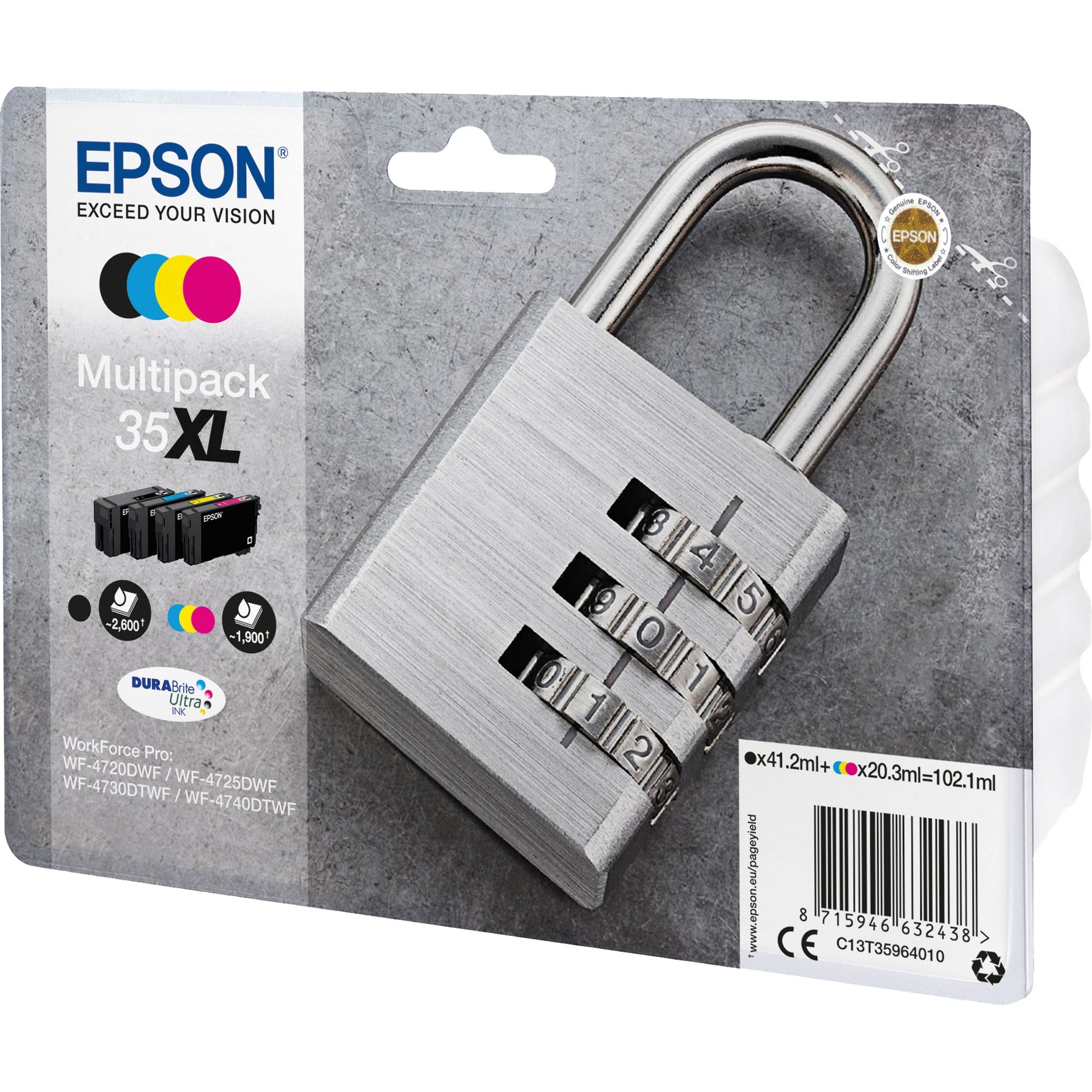 Bezeichnung: Epson Tintenpatrone Originalzubehör 35XL ca. 2.600 Seiten schwarz, ca. 3 x 1.900 Seiten farbig schwarz, mehrfarbig 4 St./Pack.