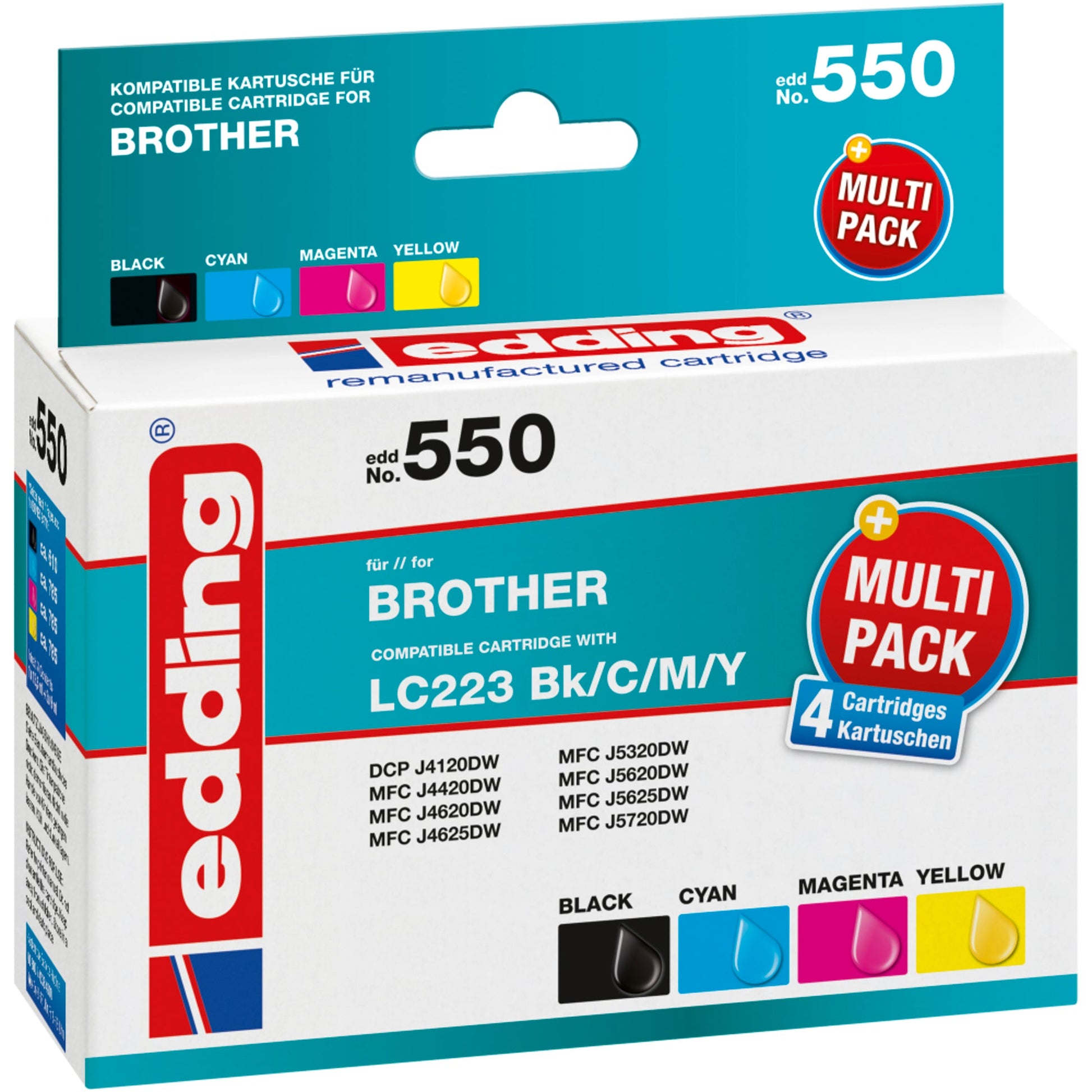 Bezeichnung: edding Tintenpatrone kein Originalzubehör Kompatibel mit: Brother LC-223 EDD-550 ca. 550 Seiten schwarz, ca. 3 x 665 Seiten farbig schwarz, mehrfarbig 4 St./Pack.