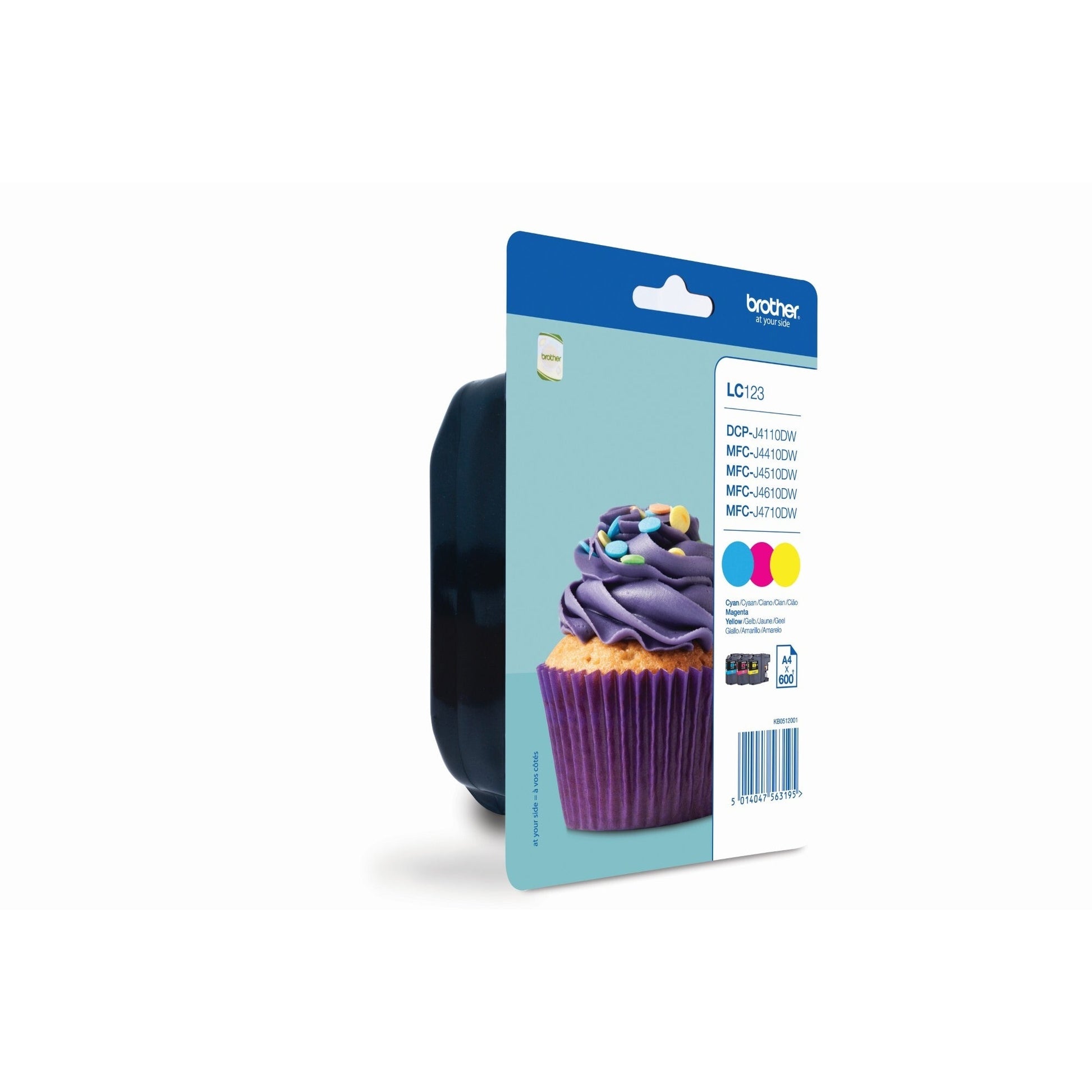 mehrfarbigBrother Tintenpatrone Originalzubehör LC-123 ca. 3 x 600 Seiten mehrfarbig 3 St./Pack.