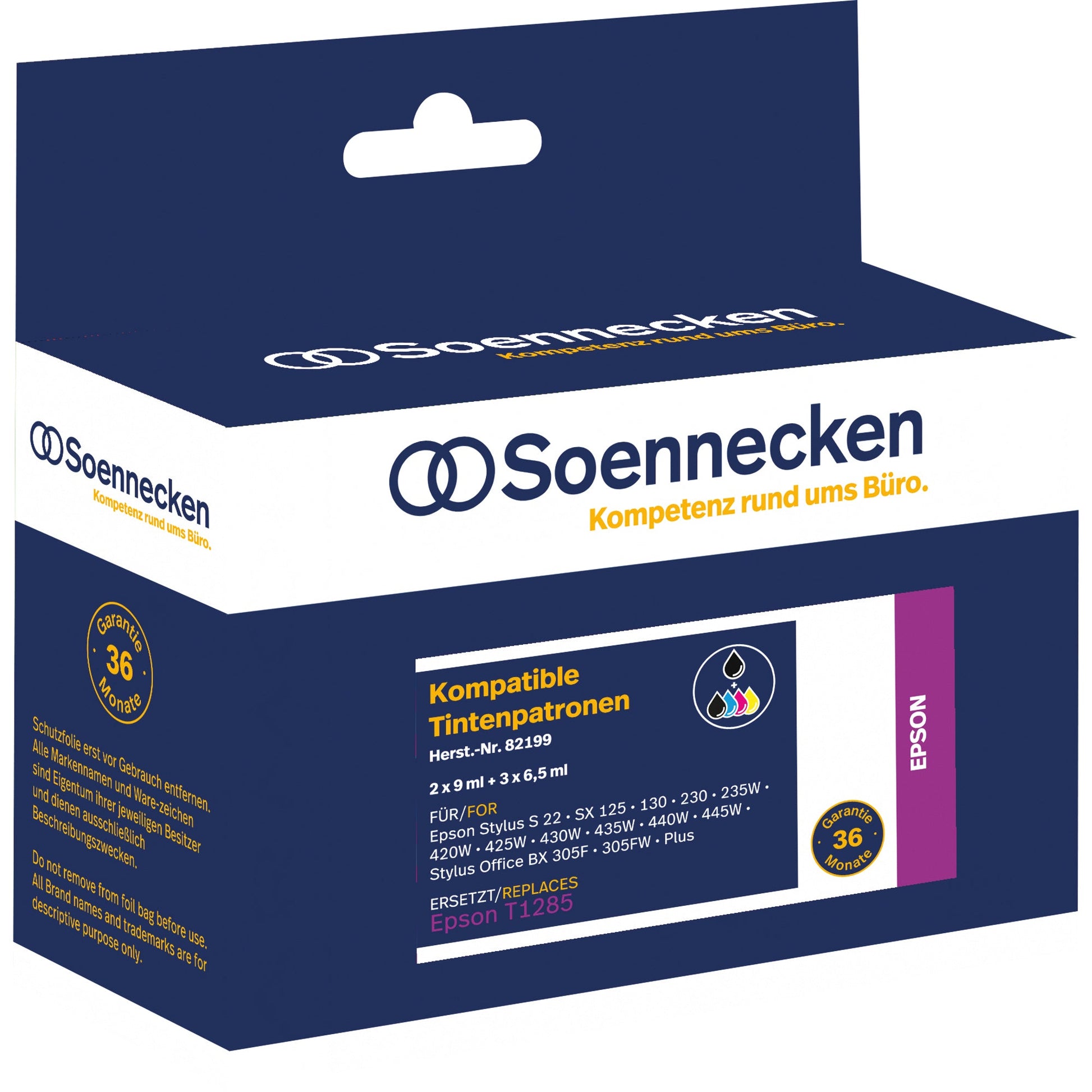 Bezeichnung: Soennecken Tintenpatrone kein Originalzubehör Kompatibel mit: Epson T1285 82199 ca. 2 x 196 Seiten schwarz, ca. 236 Seiten cyan, ca. 141 Seiten magenta, ca. 197 Seiten gelb schwarz, mehrfarbig 5 St./Pack.