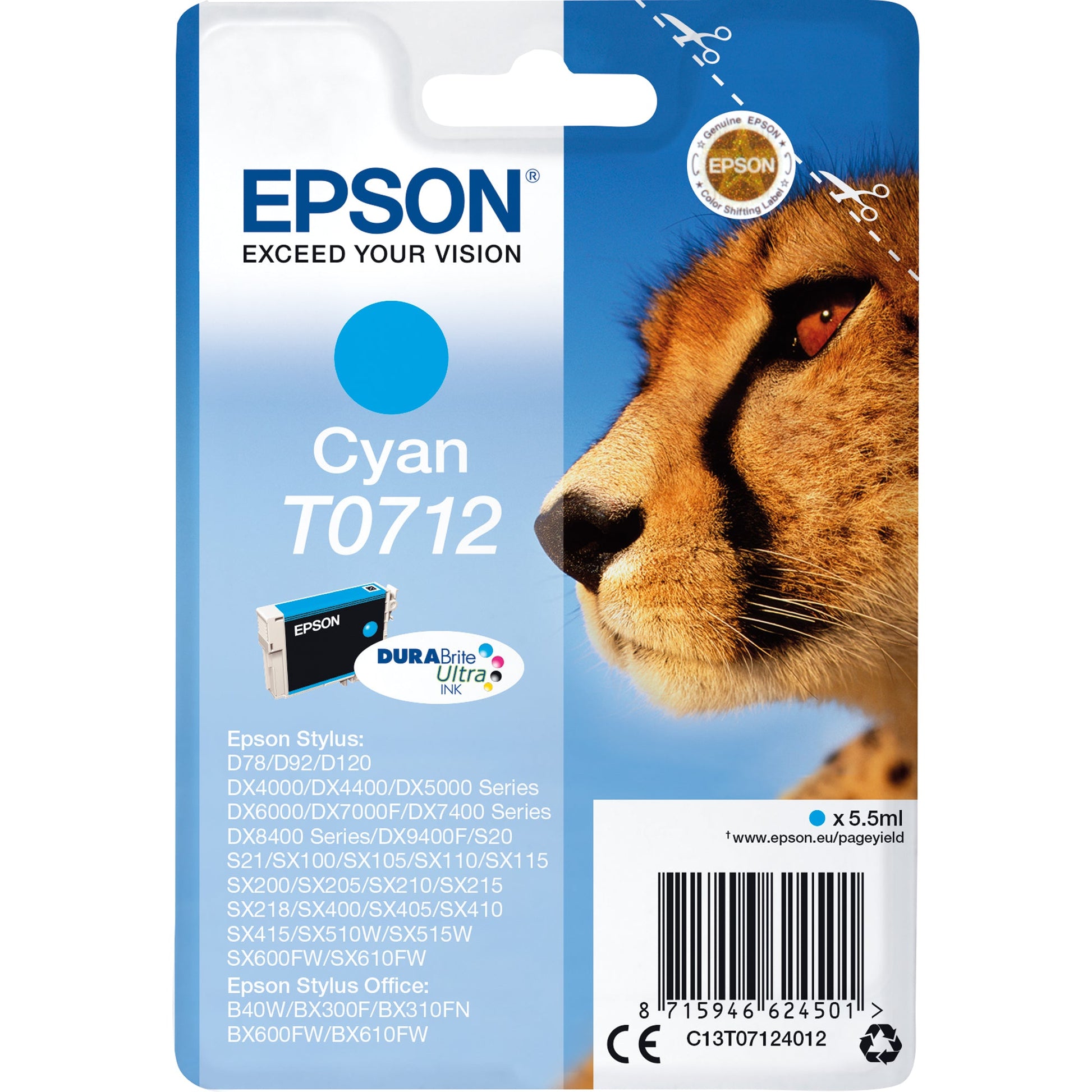 Bezeichnung: Epson Tintenpatrone Originalzubehör T0712 ca. 345 Seiten cyan 5,5ml