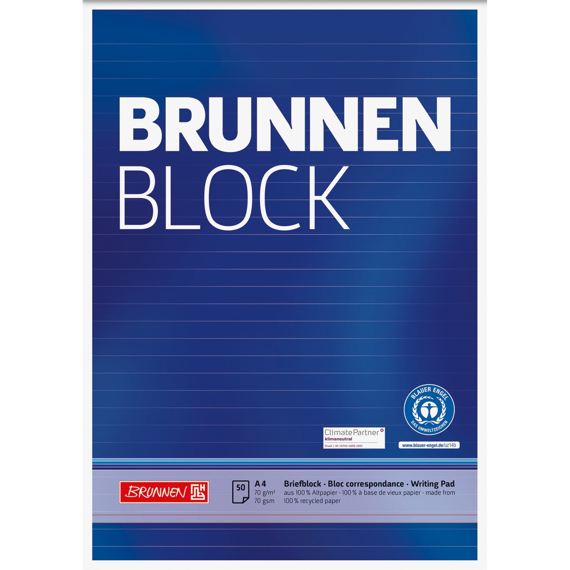 Bezeichnung: BRUNNEN Briefblock Recycling DIN A4 liniert 70g/m² blau extraweiß 50 Bl.