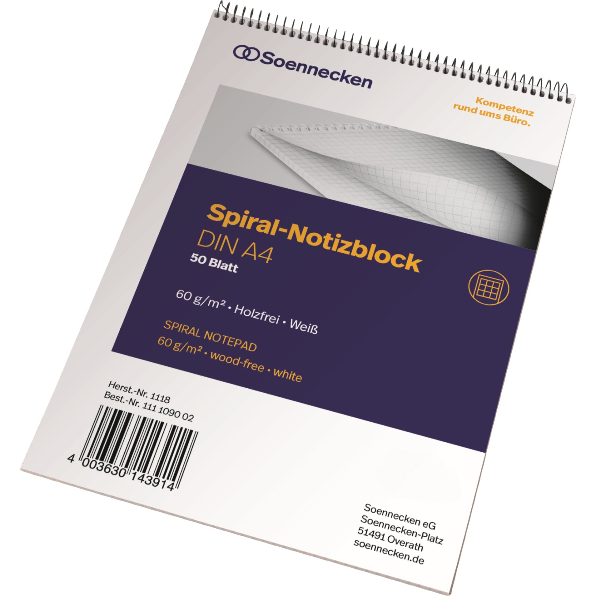 Bezeichnung: Soennecken Notizblock DIN A4 kariert 50 Bl.