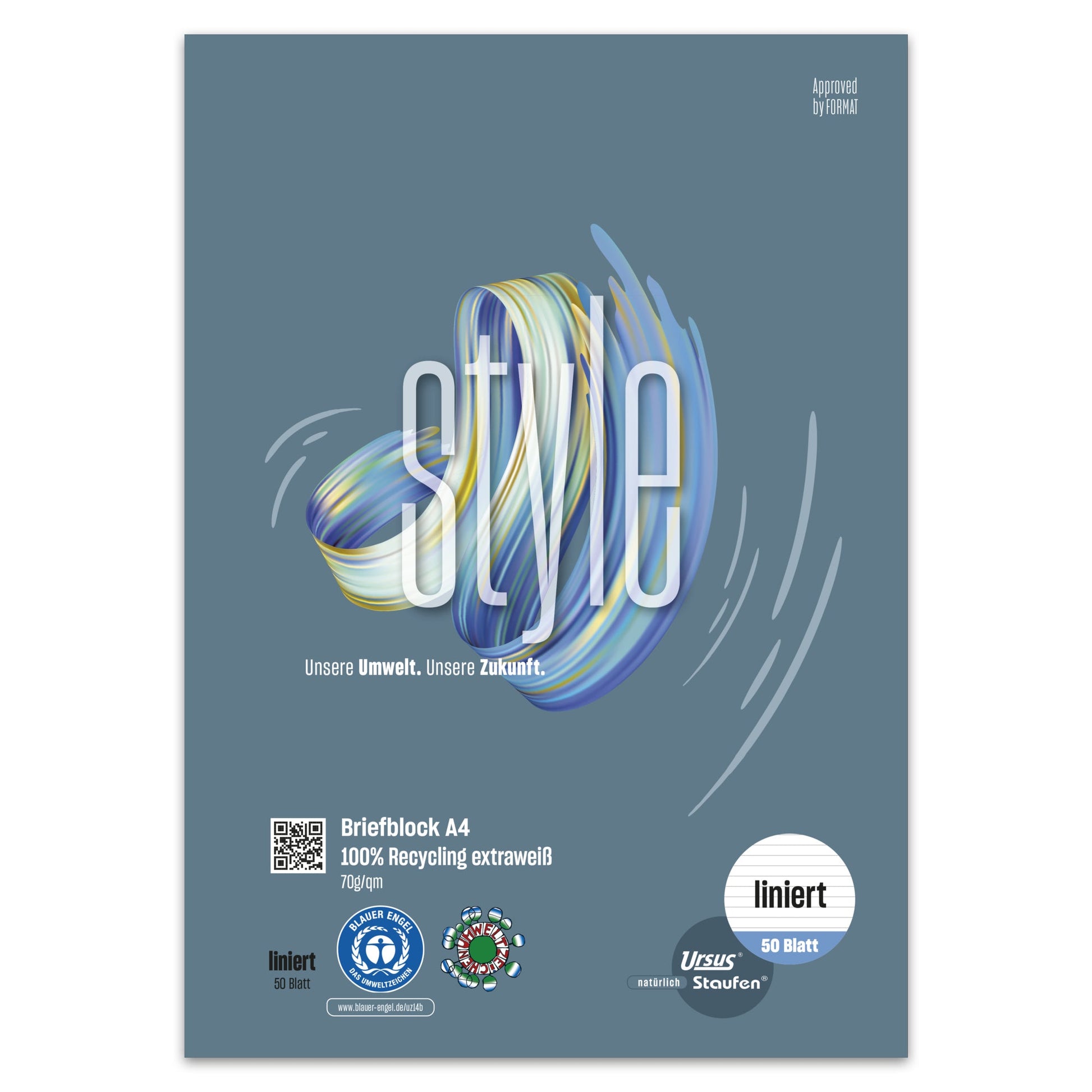 premiumweißStaufen Briefblock Style DIN A4 liniert 70g/m² blau premiumweiß 50 Bl.