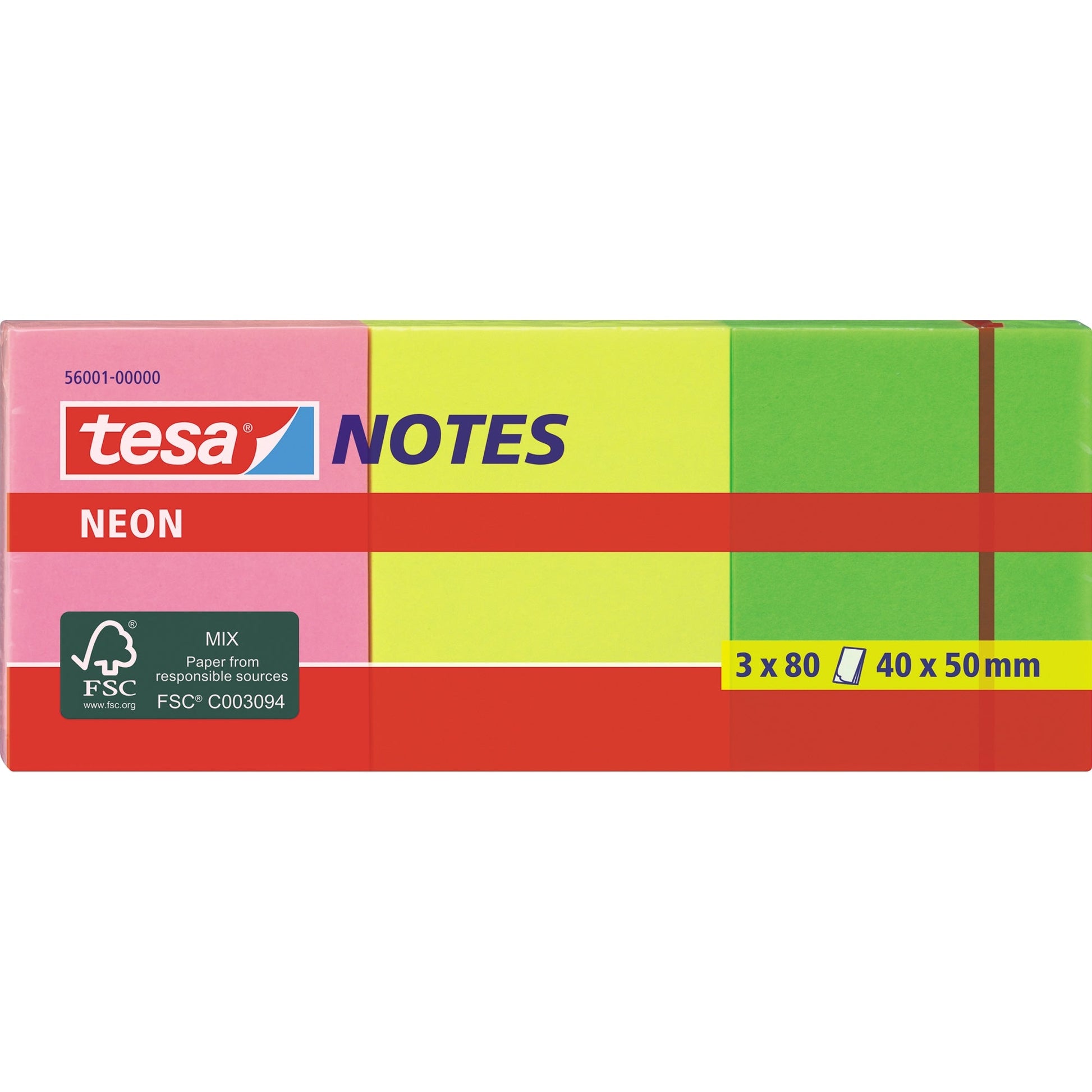 Bezeichnung: tesa® Haftnotiz Neon Notes 40 x 50 mm (B x H) pink, gelb, grün 80 Bl./Block 3 Block/Pack.