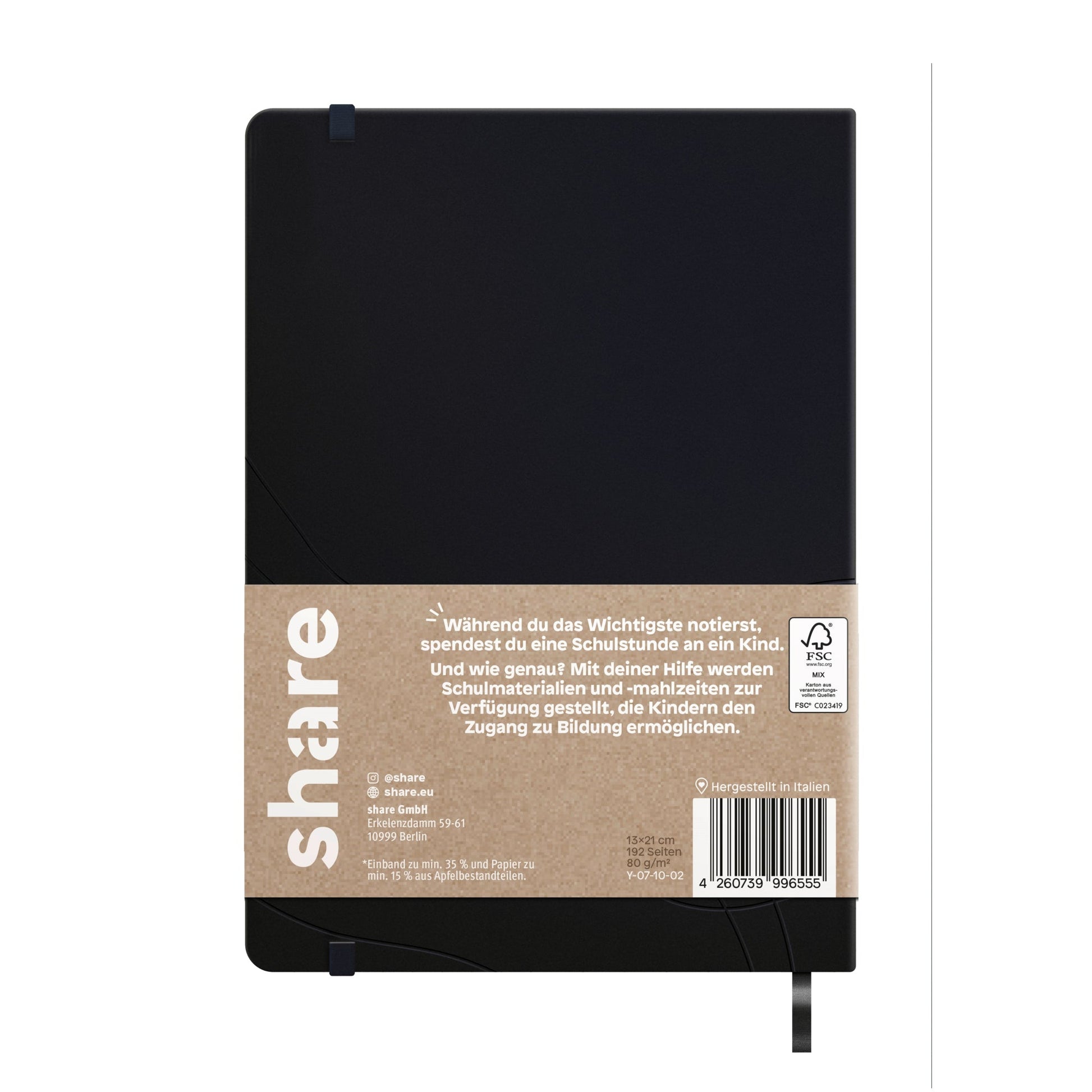 Bezeichnung: share Notizbuch DIN A5 blanko schwarz 96 Bl.