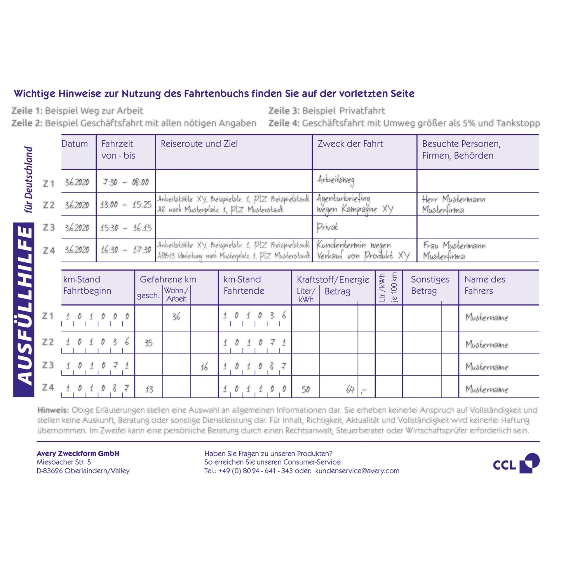 Bezeichnung: Avery Zweckform Fahrtenbuch 1221 DIN A6 quer PKW blau 32 Bl.