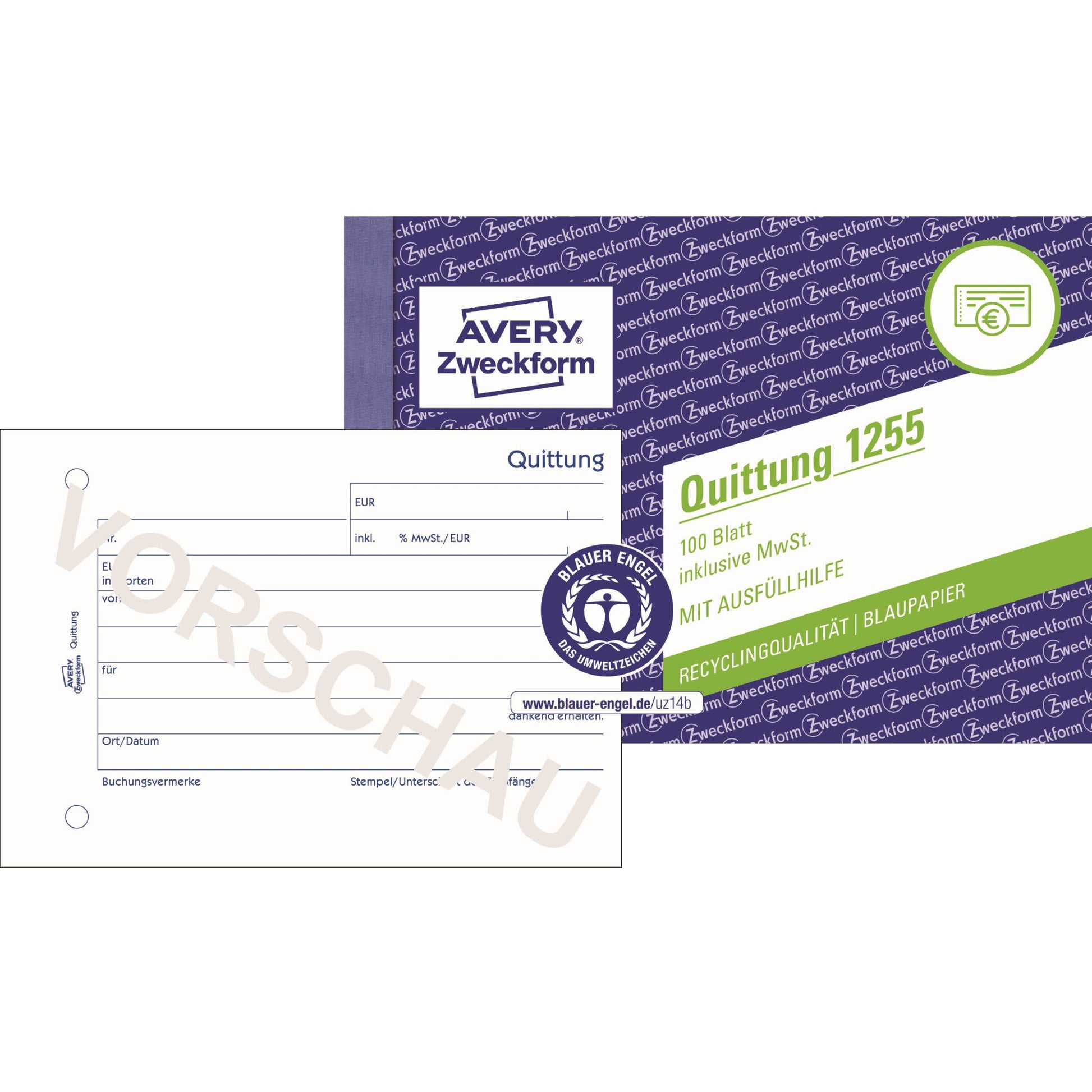 Bezeichnung: Avery Zweckform Quittung 1255 DIN A6 quer nicht selbstdurchschreibend 100 Bl.