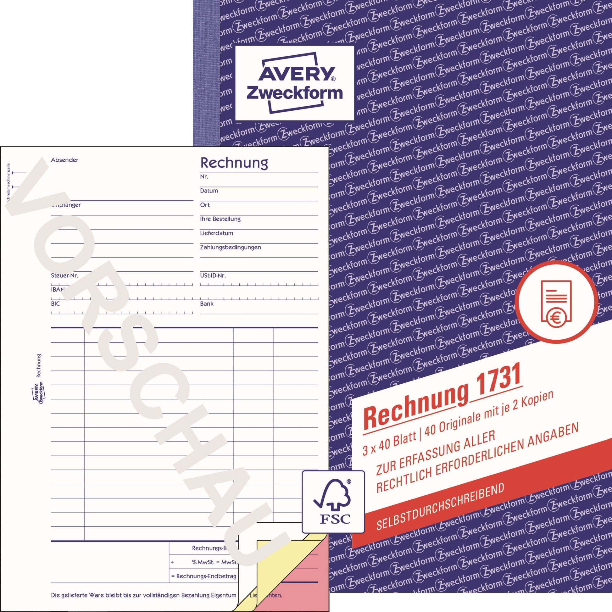 Bezeichnung: Avery Zweckform Rechnung 1731 DIN A5 2 Durchschläge 3 x 40 Bl.