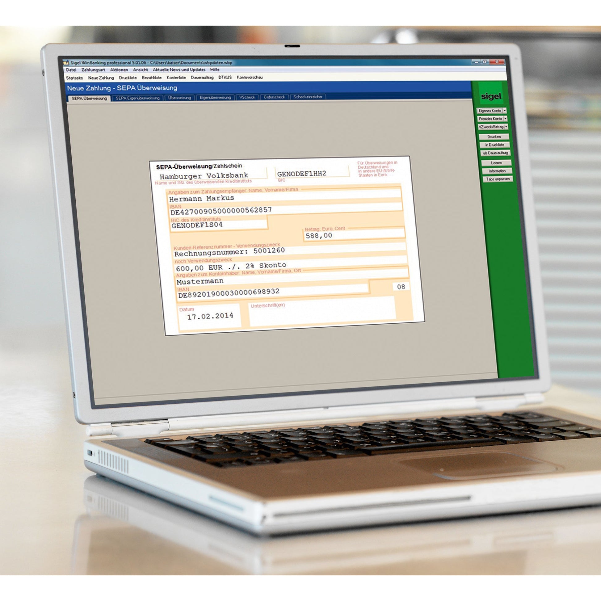PC-SEPA-Überweisung/Zahlschein zum Ausfüllen mit PC und Drucker. Für Überweisungen in Deutschland, in andere EU-/EWR-Staaten und in die Schweiz in Euro. Gültig für alle Banken und Sparkassen. Beleglesefähiges OCR-Spezialpapier.