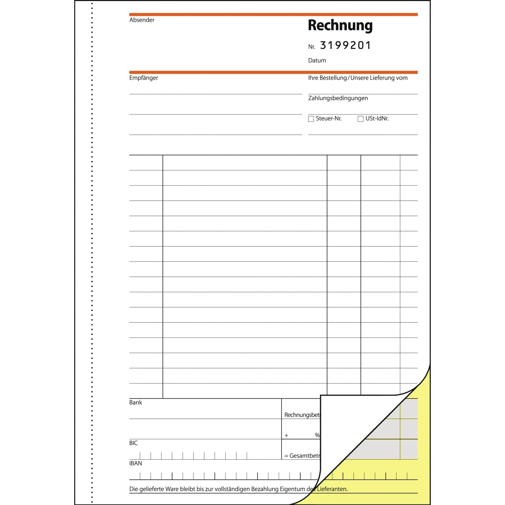 Farbe des Durchschlages: gelb