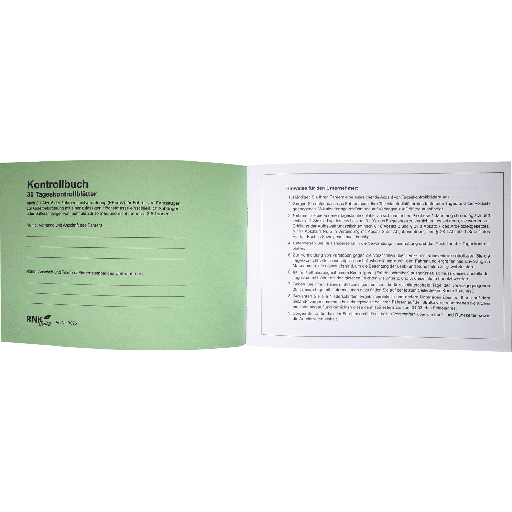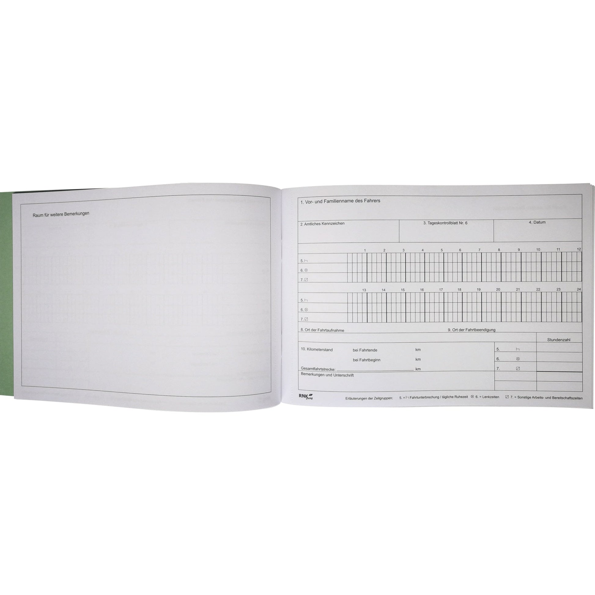Bezeichnung: RNK Verlag Fahrtenbuch DIN A5 quer grün 32 Bl.