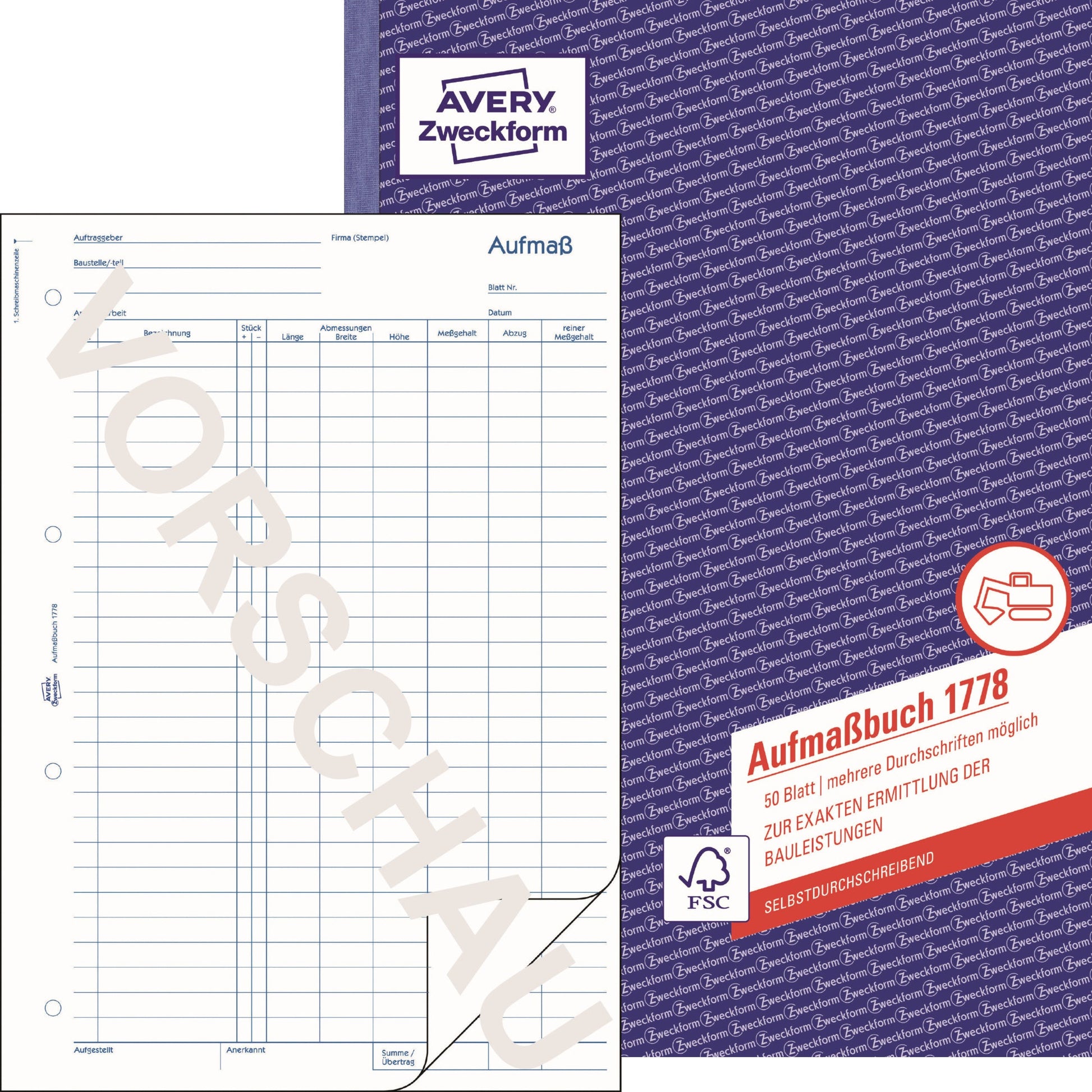 Bezeichnung: Avery Zweckform Aufmaßbuch 1778 DIN A4 selbstdurchschreibend 50 Bl.