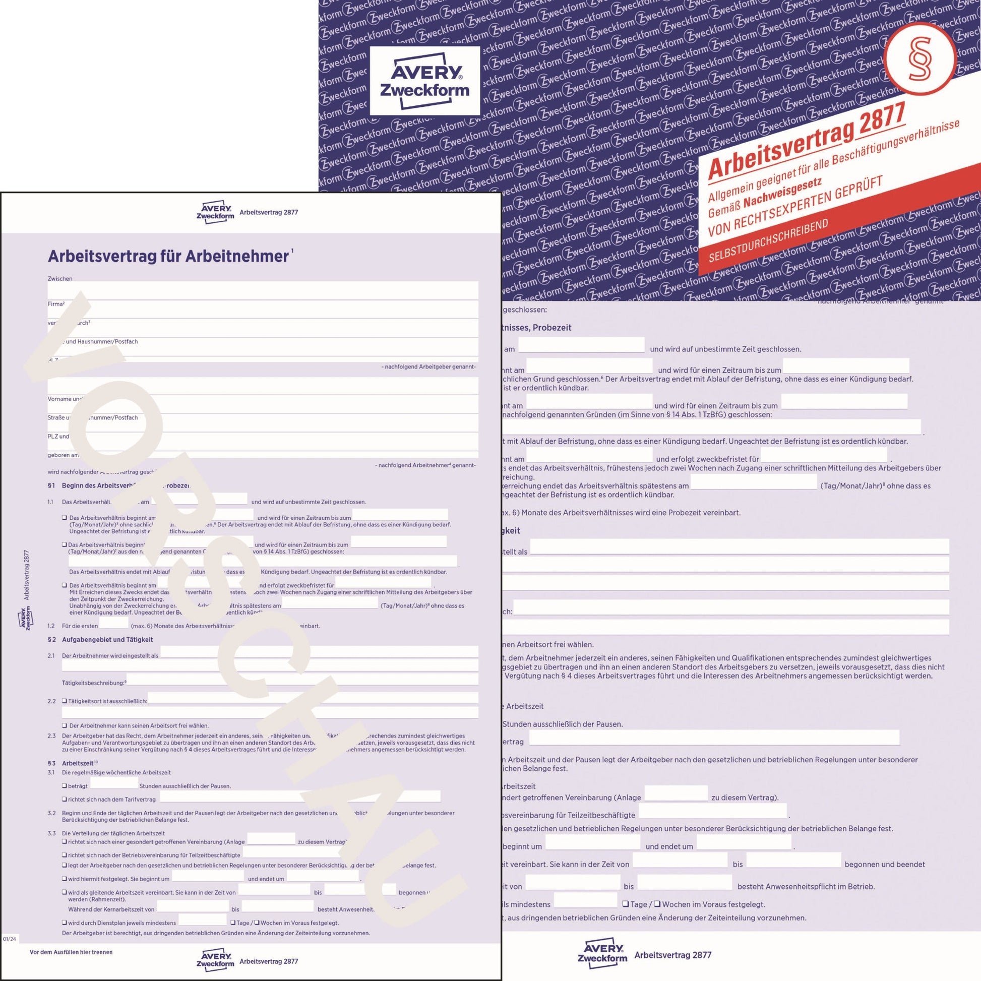 Bezeichnung: Avery Zweckform Arbeitsvertrag 2877 DIN A4 selbstdurchschreibend 2 x 3 Bl.