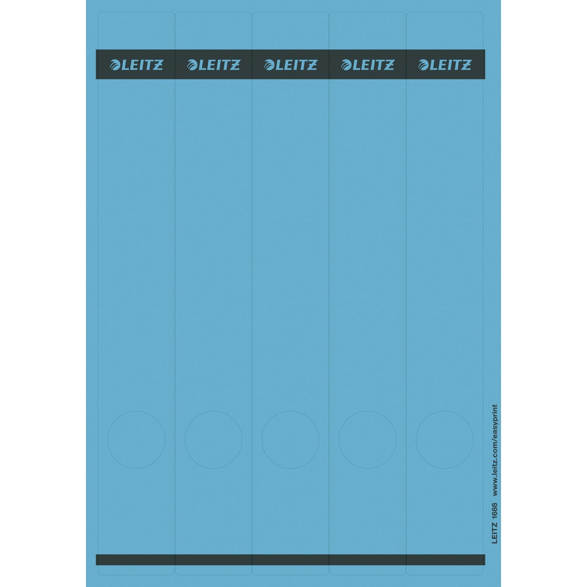 Bezeichnung: Leitz Ordnerrückenetikett schmal/lang 39 x 285 mm (B x H) selbstklebend mit Griffloch blau 125 Etik./Pack.