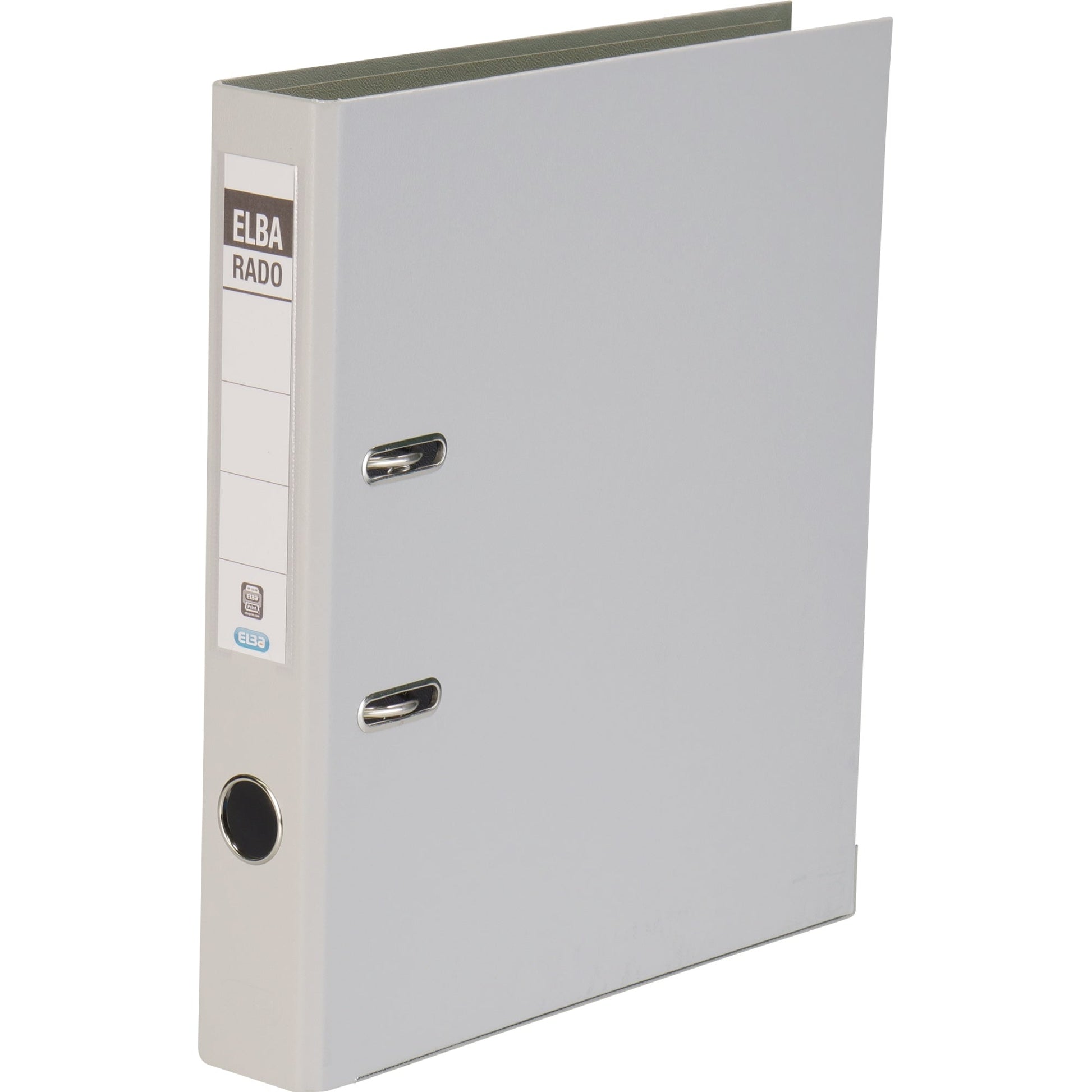 Bezeichnung: ELBA Ordner rado plast 50mm DIN A4 Rückenschild: einsteckbar mit Schlitzen Werkstoff: Pappe Material außen: PVC Material innen: PVC grau