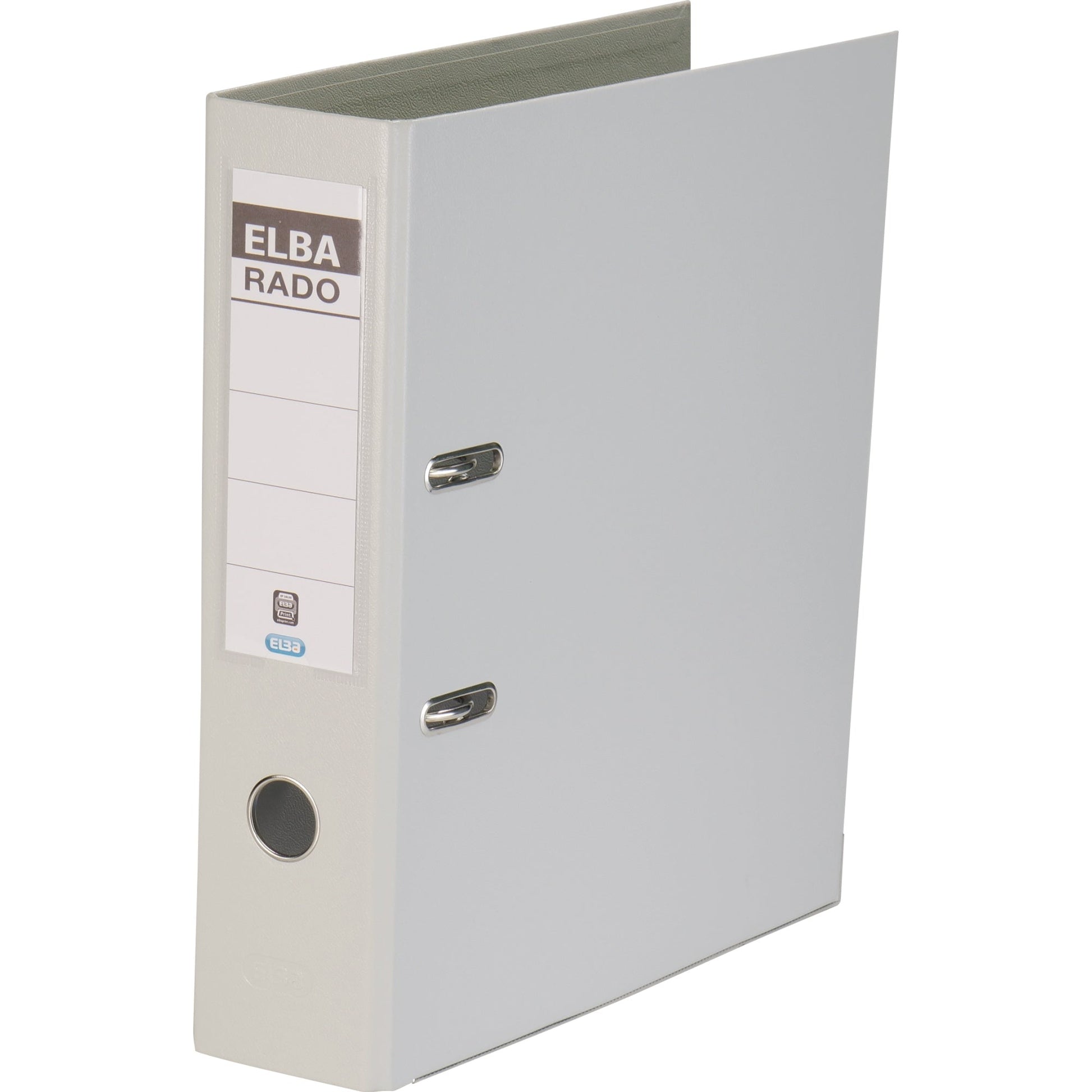 Bezeichnung: ELBA Ordner rado plast 80mm DIN A4 Rückenschild: einsteckbar mit Schlitzen Werkstoff: Pappe Material außen: PVC Material innen: PVC grau