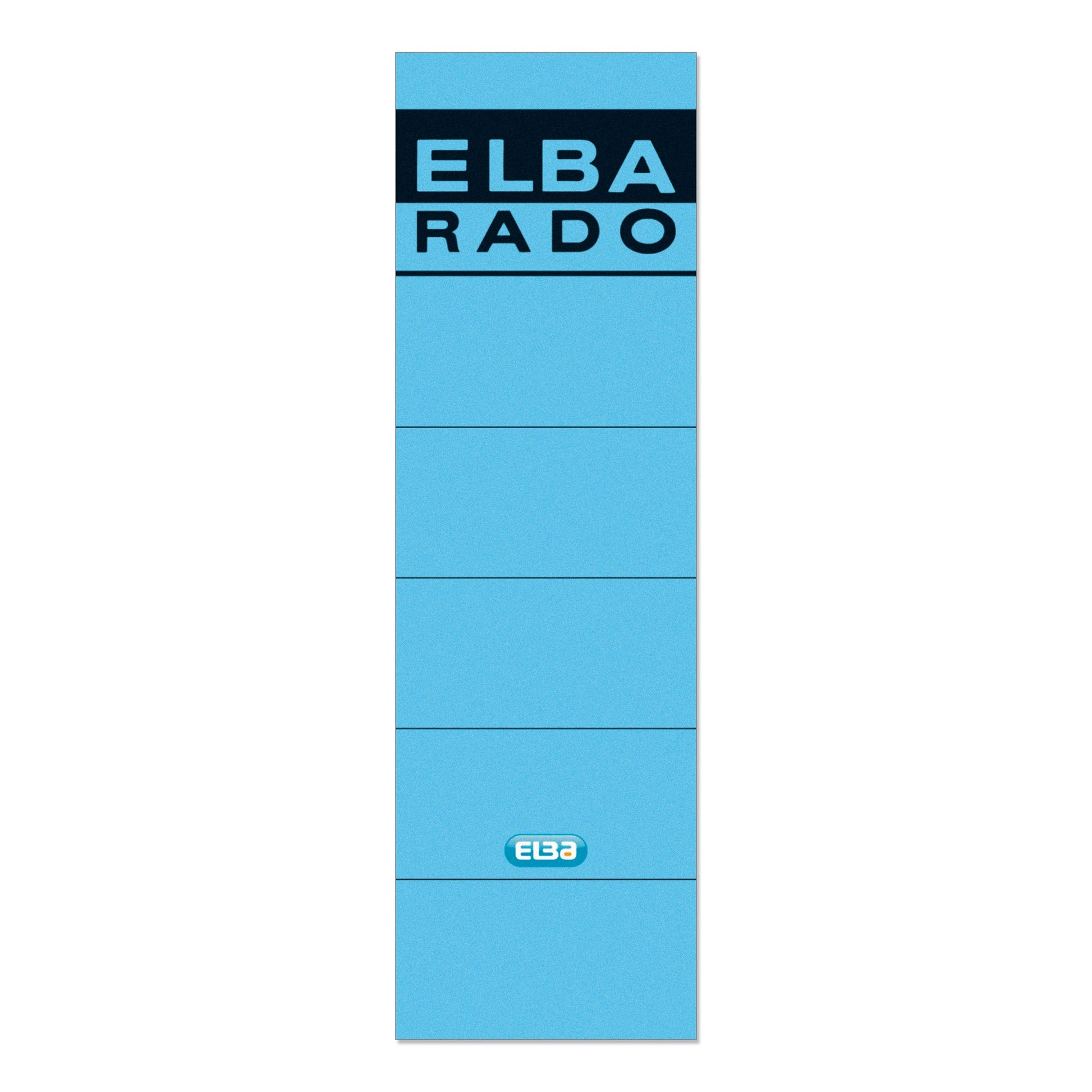 Bezeichnung: ELBA Ordnerrückenetikett breit/kurz 59 x 190 mm (B x H) selbstklebend ohne Griffloch blau 10 Etik./Pack.