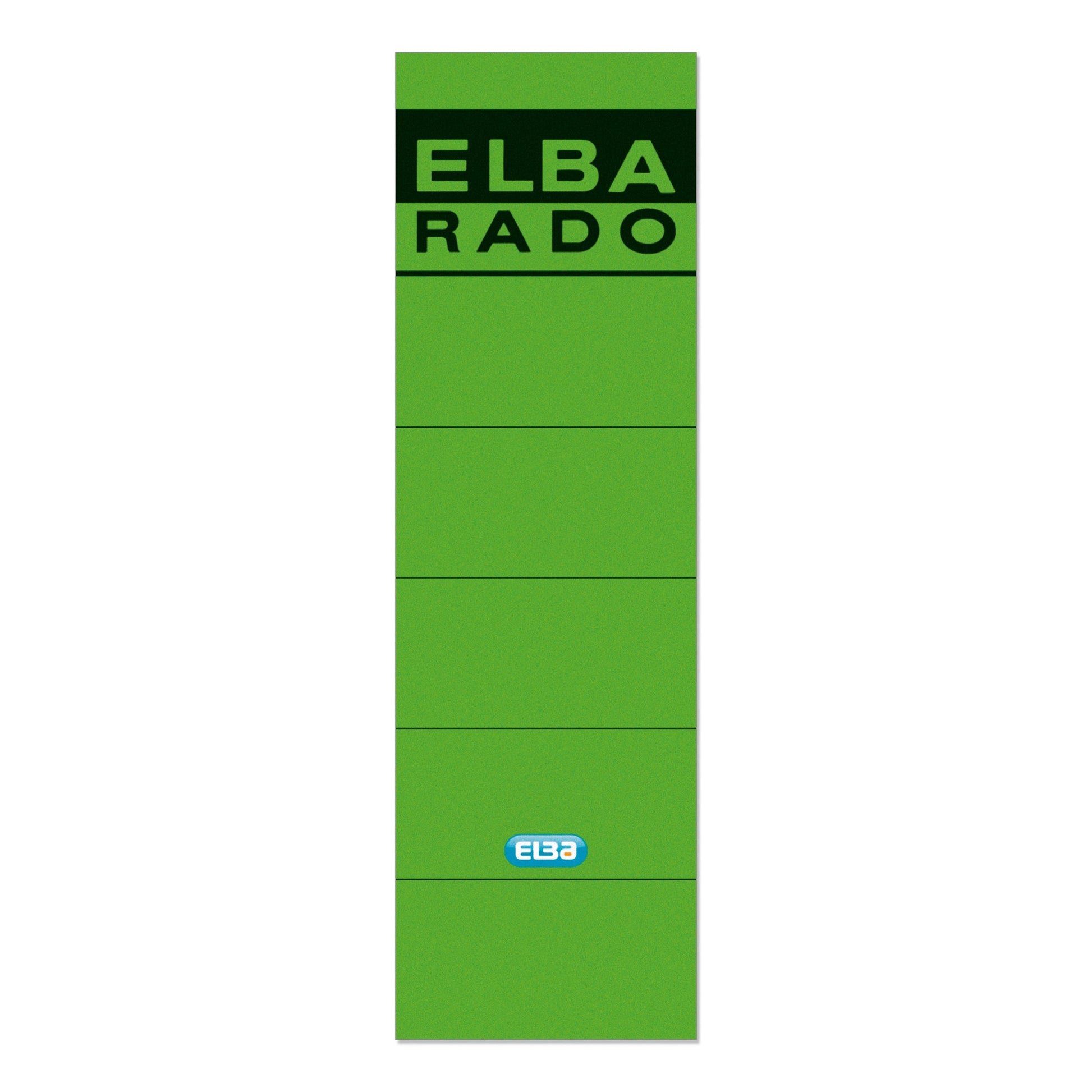 Bezeichnung: ELBA Ordnerrückenetikett breit/kurz 59 x 190 mm (B x H) selbstklebend ohne Griffloch grün 10 Etik./Pack.