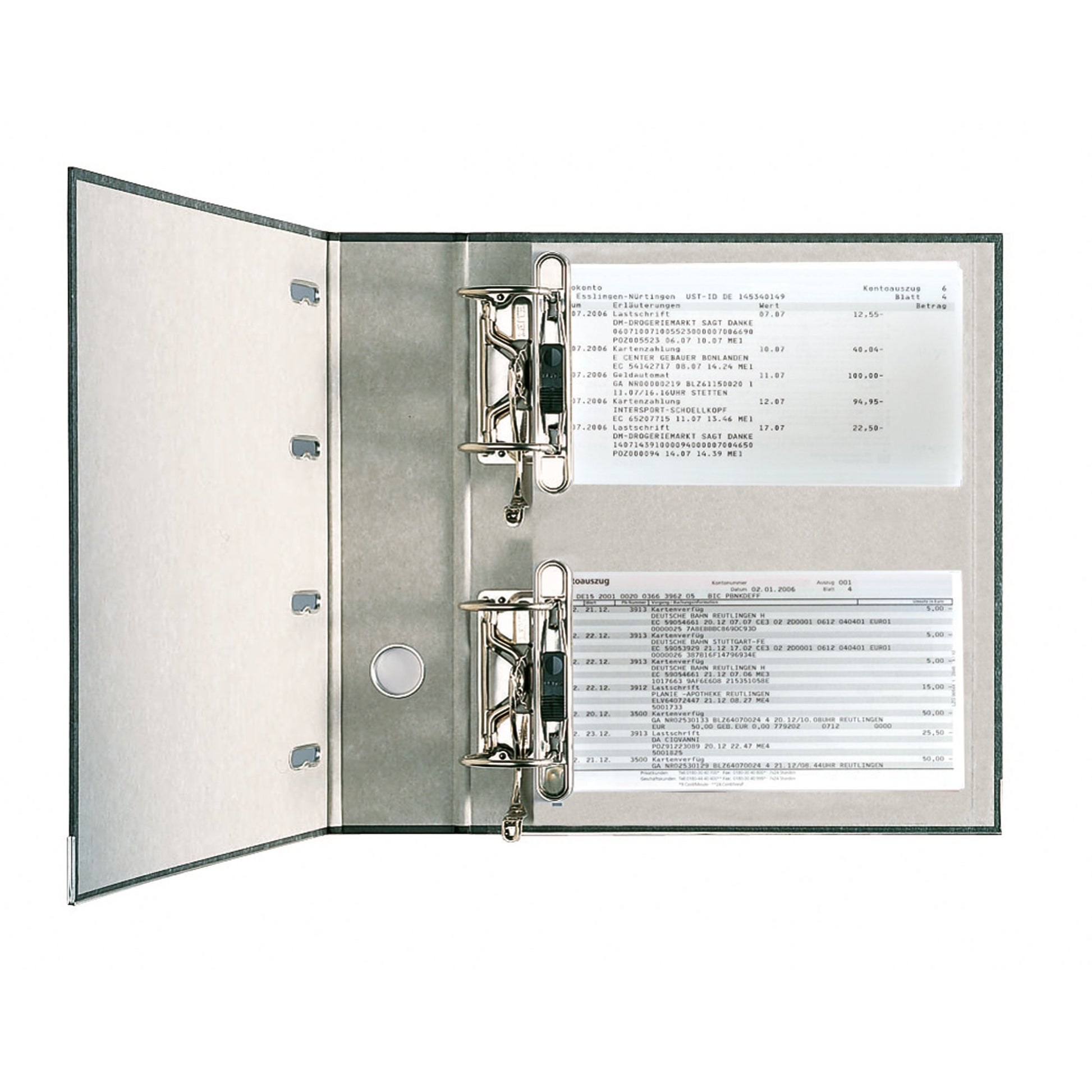 Bezeichnung: Leitz Doppelordner 75mm 2 x DIN A5 quer Rückenschild: geklebt Hebelmechanik Graupappe, 100 % recycelt Wolkenmarmor schwarz