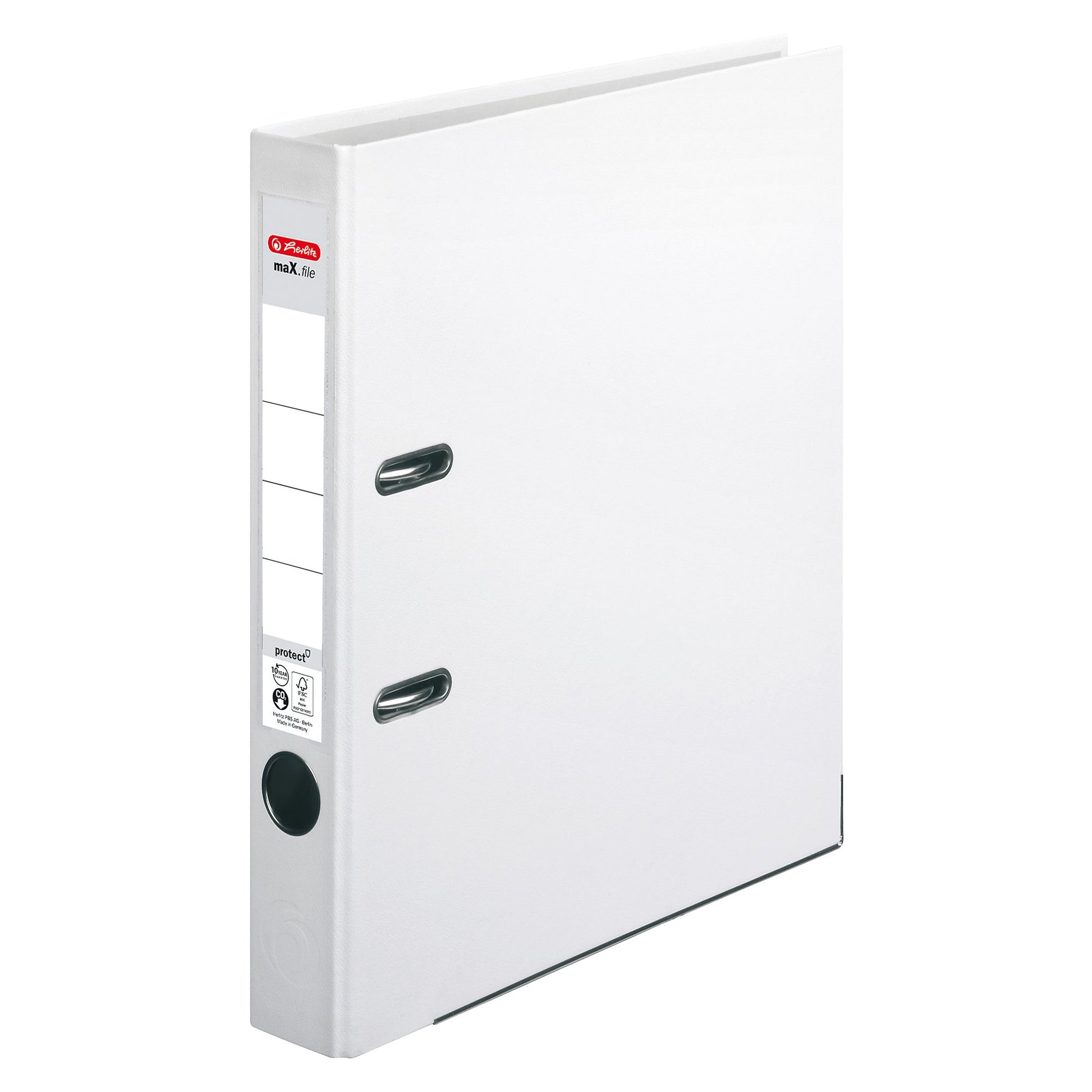 Bezeichnung: Herlitz Ordner maX.file protect 50mm DIN A4 Rückenschild: einsteckbar mit Schlitzen Material außen: Polypropylen Material innen: Papier weiß
