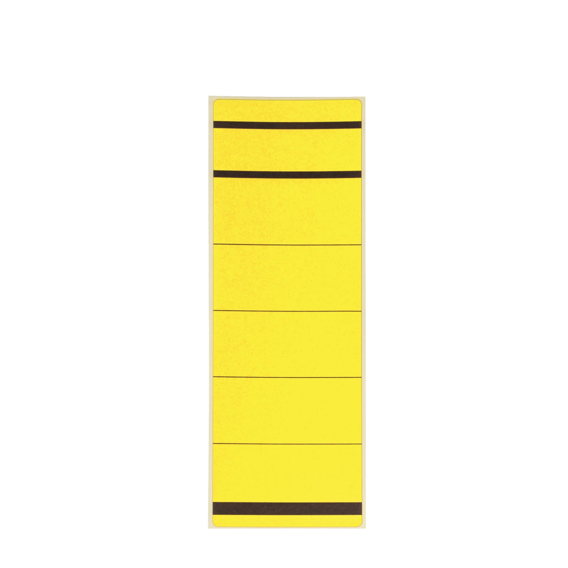 Bezeichnung: Westcott Ordnerrückenetikett breit/kurz 61,5 x 192 mm (B x H) selbstklebend mit Griffloch gelb 10 Etik./Pack.