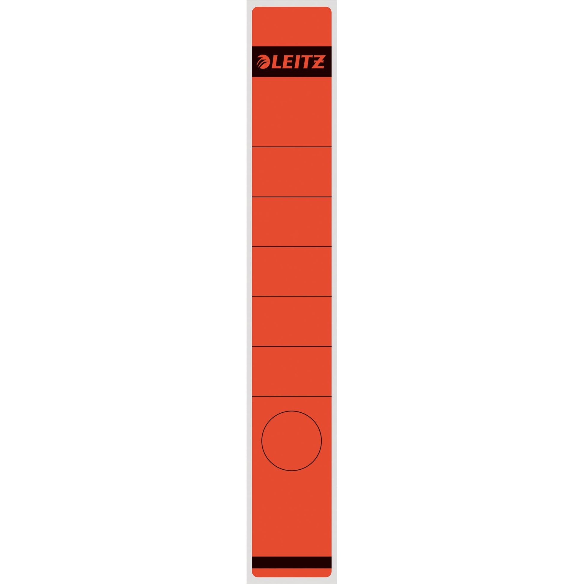 Bezeichnung: Leitz Ordnerrückenetikett schmal/lang 39 x 285 mm (B x H) selbstklebend mit Griffloch rot 10 Etik./Pack.