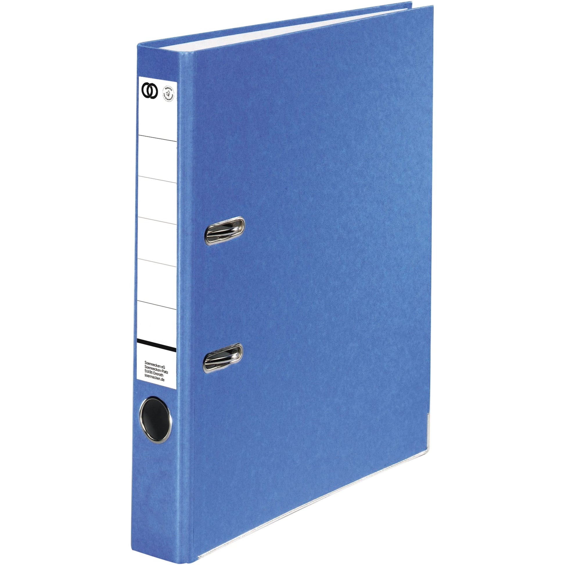 Bezeichnung: Soennecken Ordner oeco 50mm DIN A4 mit Schlitzen Werkstoff: Recyclingkarton Material außen: Papier Material innen: Papier dunkelblau