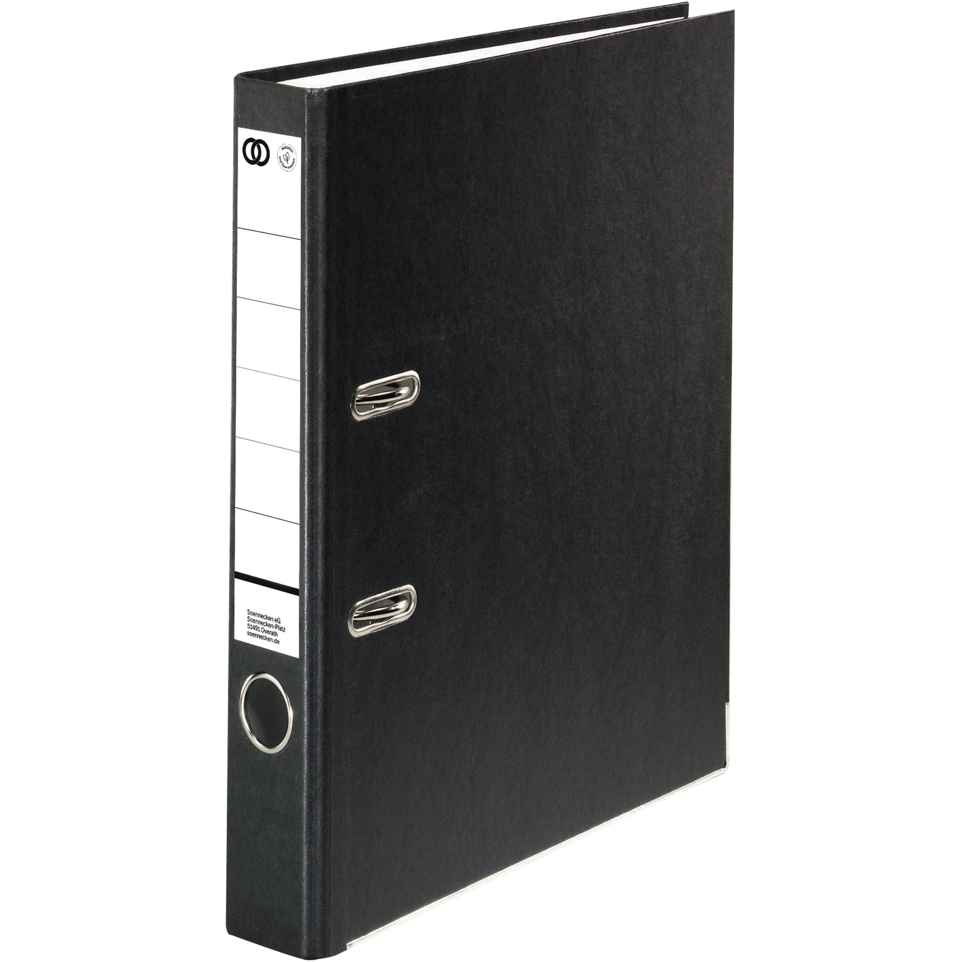 Bezeichnung: Soennecken Ordner oeco 50mm DIN A4 mit Schlitzen Werkstoff: Recyclingkarton Material außen: Papier Material innen: Papier schwarz