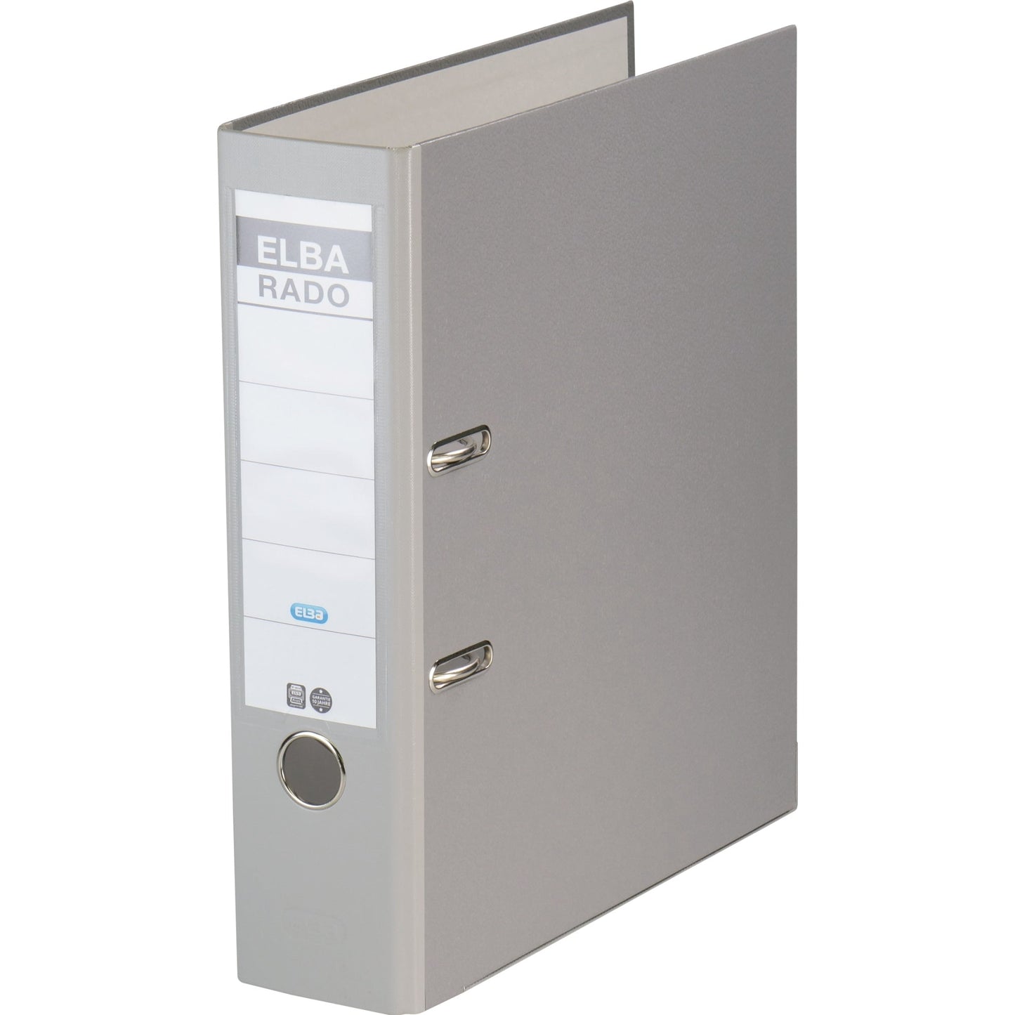 grauHochwertiger Ordner mit individueller Beschriftungsmöglichkeit mit ELBA Print (www.elbaprint.com/de/). Das mit Acylaten veredelte Papier ist schmutz- und feuchtigkeitsabweisend, sorgt somit für Langlebigkeit und schützt die Unterlagen. Die rado-Ösen sorgen für ein standfestes Aufstellen des Ordners.