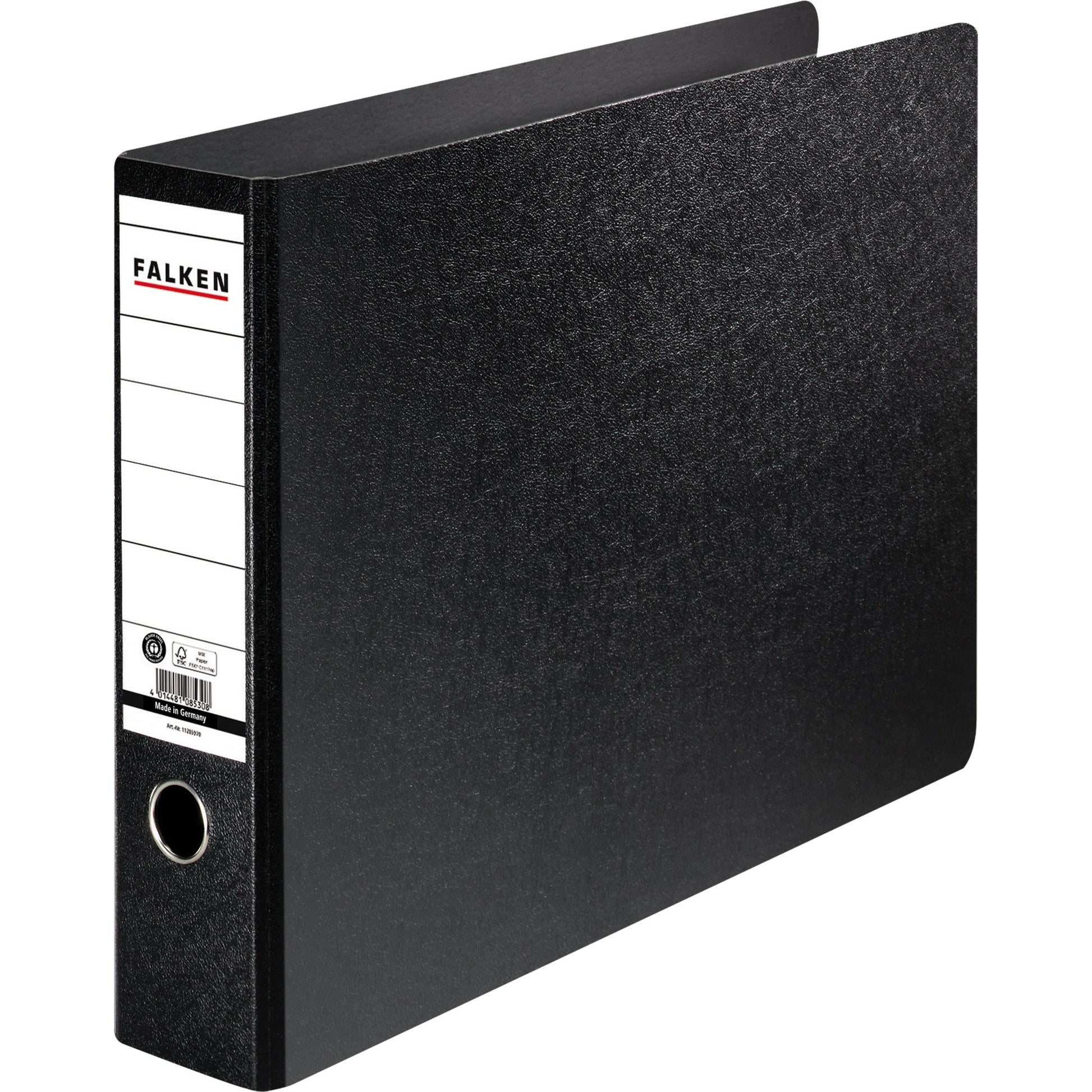 Bezeichnung: Falken Ordner 80mm DIN A3 quer Rückenschild: geklebt ohne Schlitze Werkstoff: Hartpappe schwarz