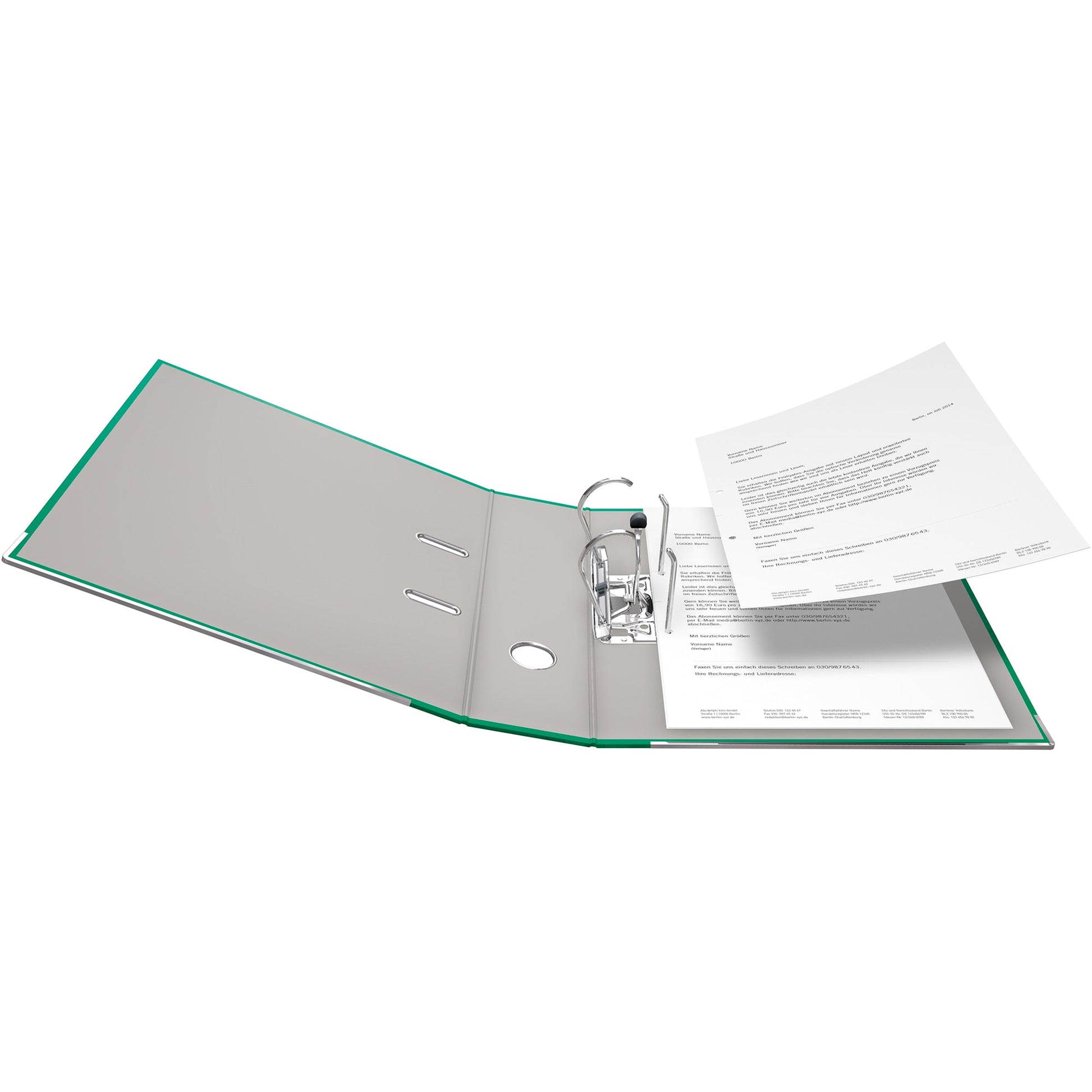 Bezeichnung: Falken Ordner Recycolor 80mm DIN A4 Rückenschild: geklebt mit Schlitzen Werkstoff: Pappe Material außen: Kraftpapier Material innen: Papier grün