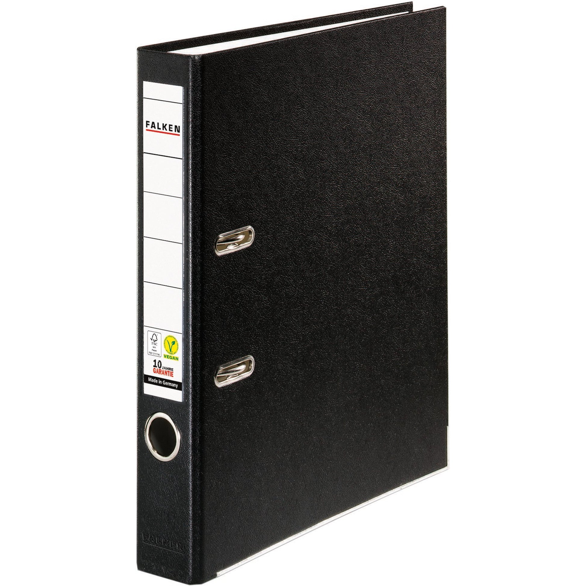 Bezeichnung: Falken Ordner Color Vegan 50mm DIN A4 Rückenschild: einsteckbar mit Schlitzen Werkstoff: Pappe Material außen: Polypropylen Material innen: Papier schwarz