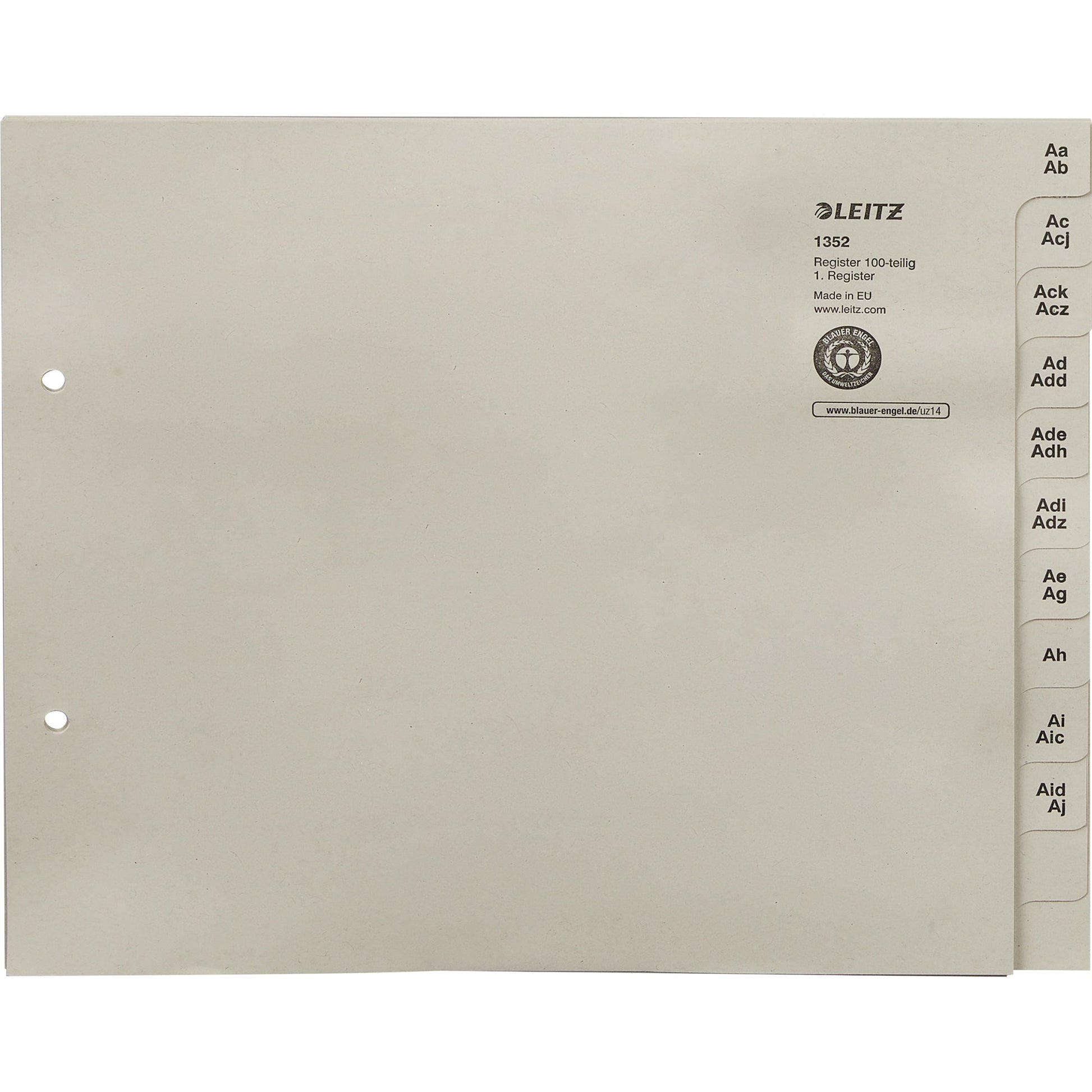 Bezeichnung: Leitz A-Z Register DIN A4, Überbreite Tauenpapier, 100 % recycelt grau 1.200 Registerblätter