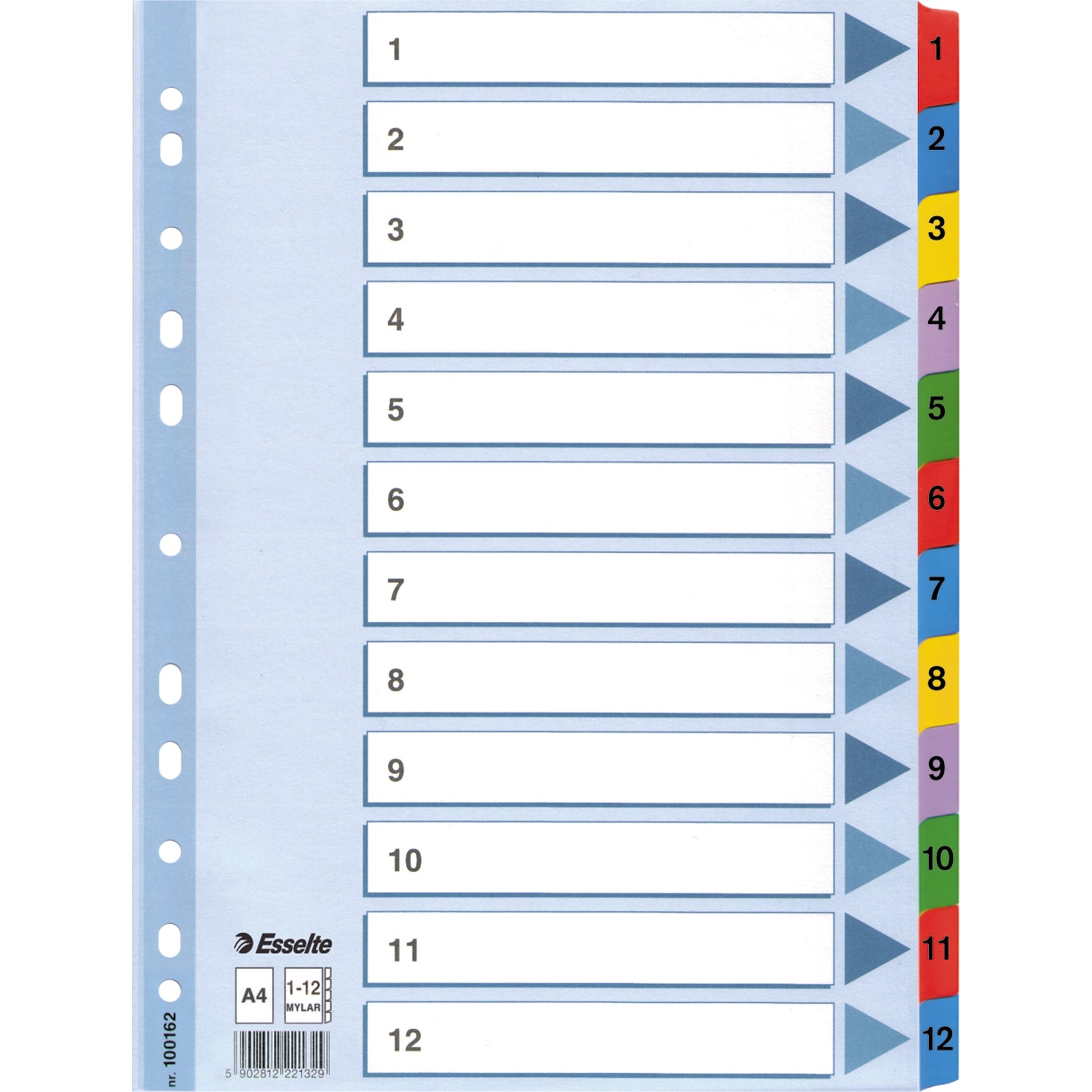 Bezeichnung: Esselte Zahlenregister DIN A4 160g/m² 1-12 Mylarkarton weiß