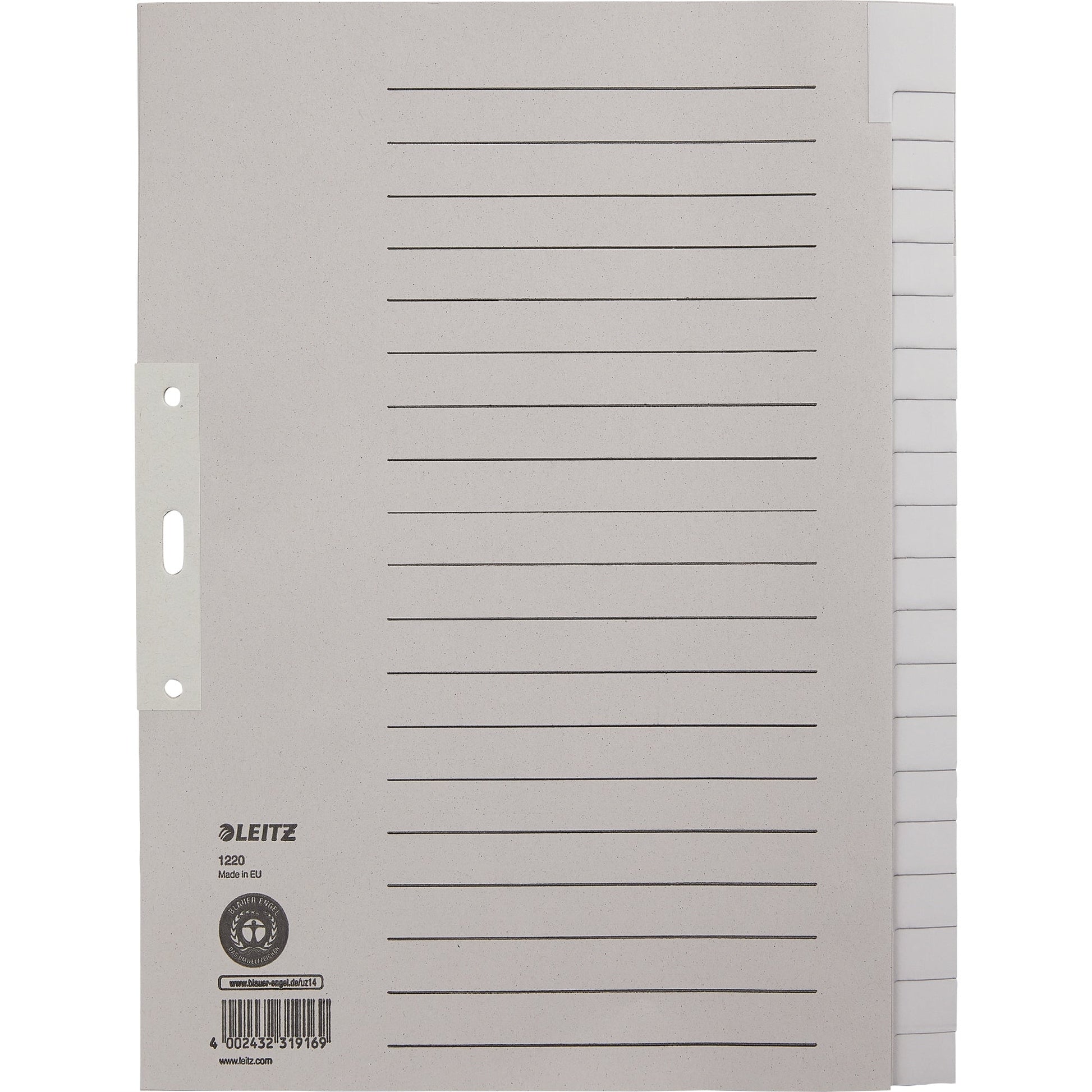 Bezeichnung: Leitz Ordnerregister DIN A4, Überbreite blanko Tauenpapier, 100 % recycelt grau 20 Registerblätter