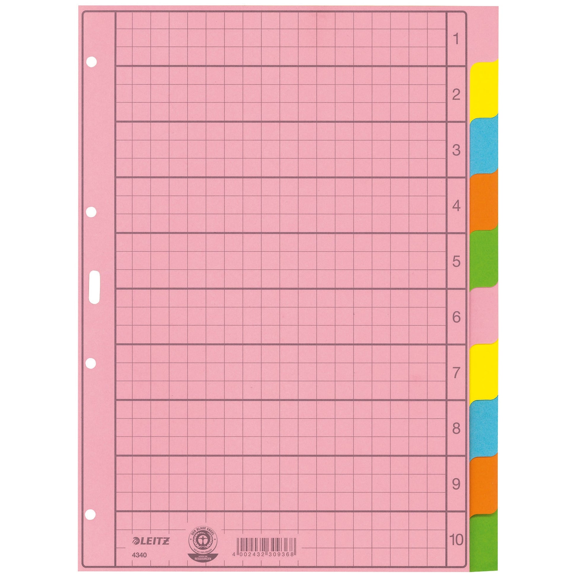 Bezeichnung: Leitz Ordnerregister DIN A4 blanko Tauenpapier, 100 % recycelt mehrfarbig 10 Registerblätter