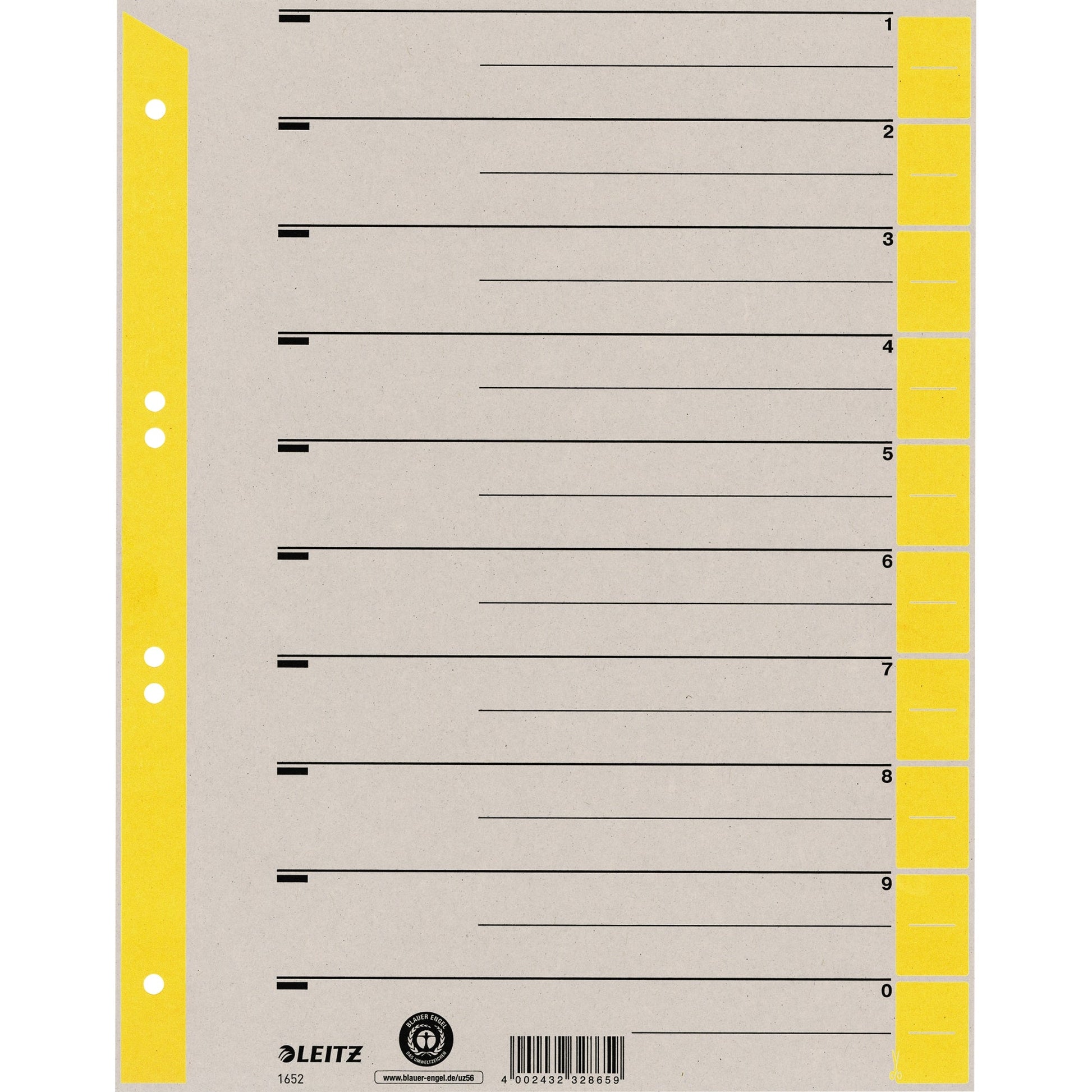 Bezeichnung: Leitz Trennblatt DIN A4, Überbreite Kraftkarton, 100 % recycelt gelb 100 St./Pack.