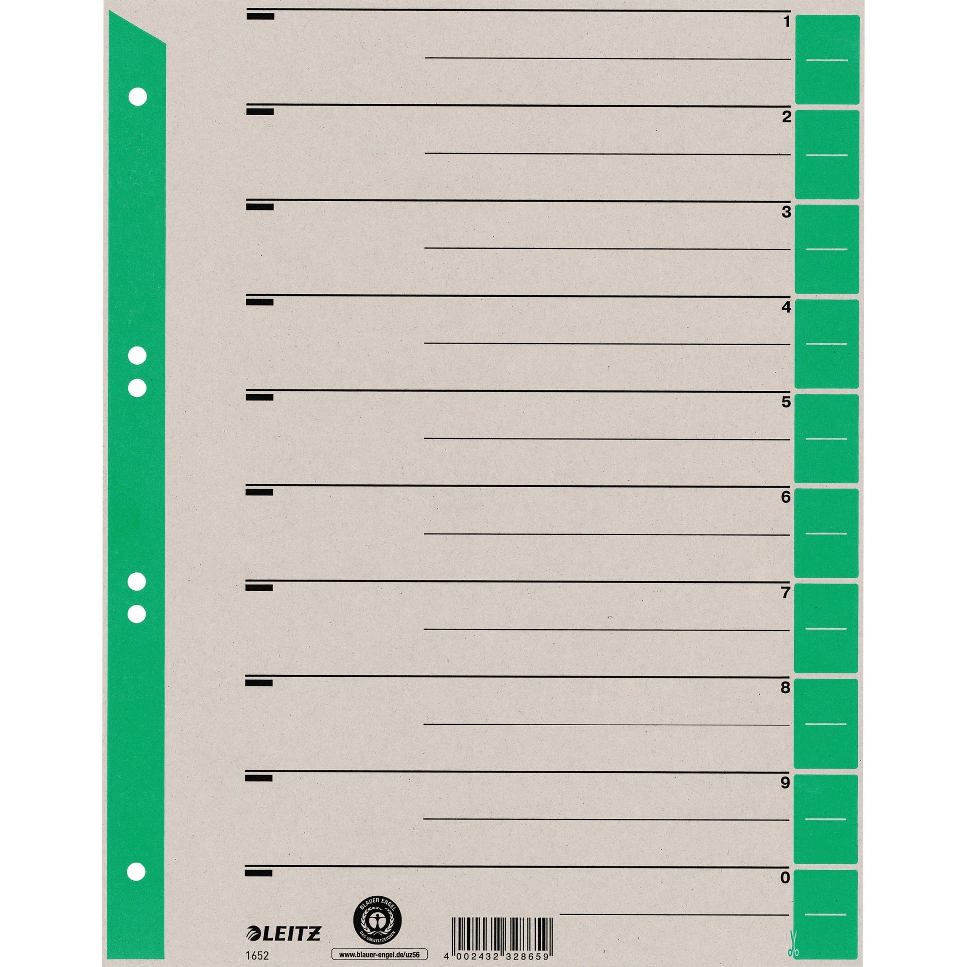 Bezeichnung: Leitz Trennblatt DIN A4, Überbreite Kraftkarton, 100 % recycelt grün 100 St./Pack.