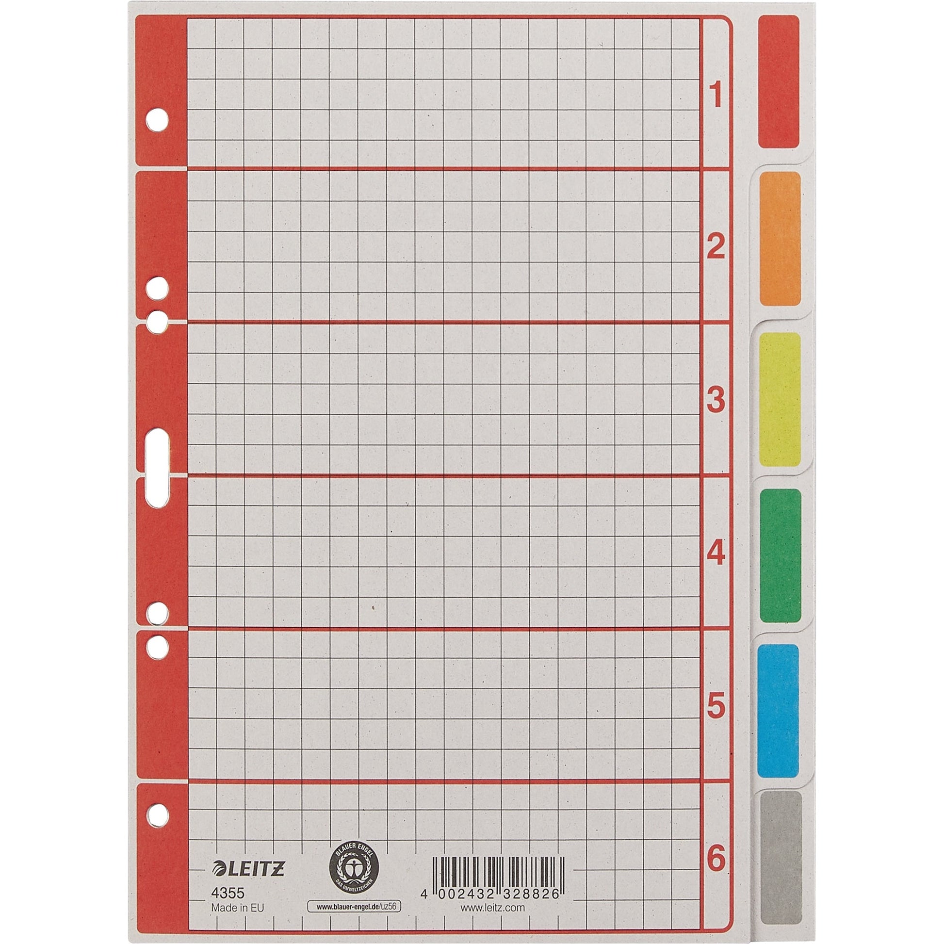 Bezeichnung: Leitz Ordnerregister DIN A5 blanko Karton, 100 % recycelt mehrfarbig 6 Registerblätter