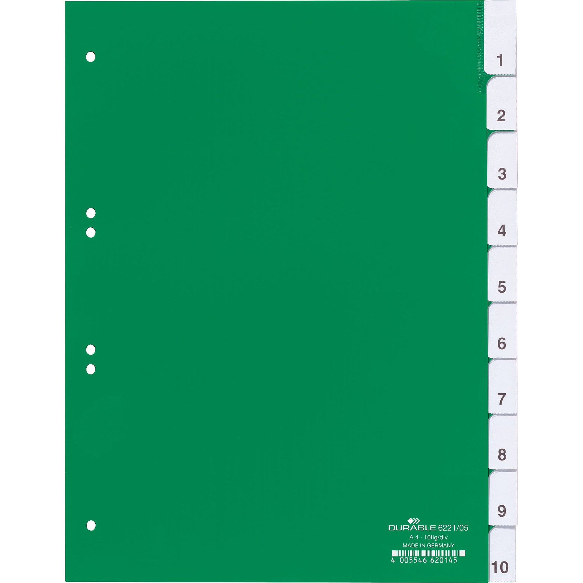 Bezeichnung: DURABLE Ordnerregister DIN A4 blanko Kunststoff grün 10 Registerblätter
