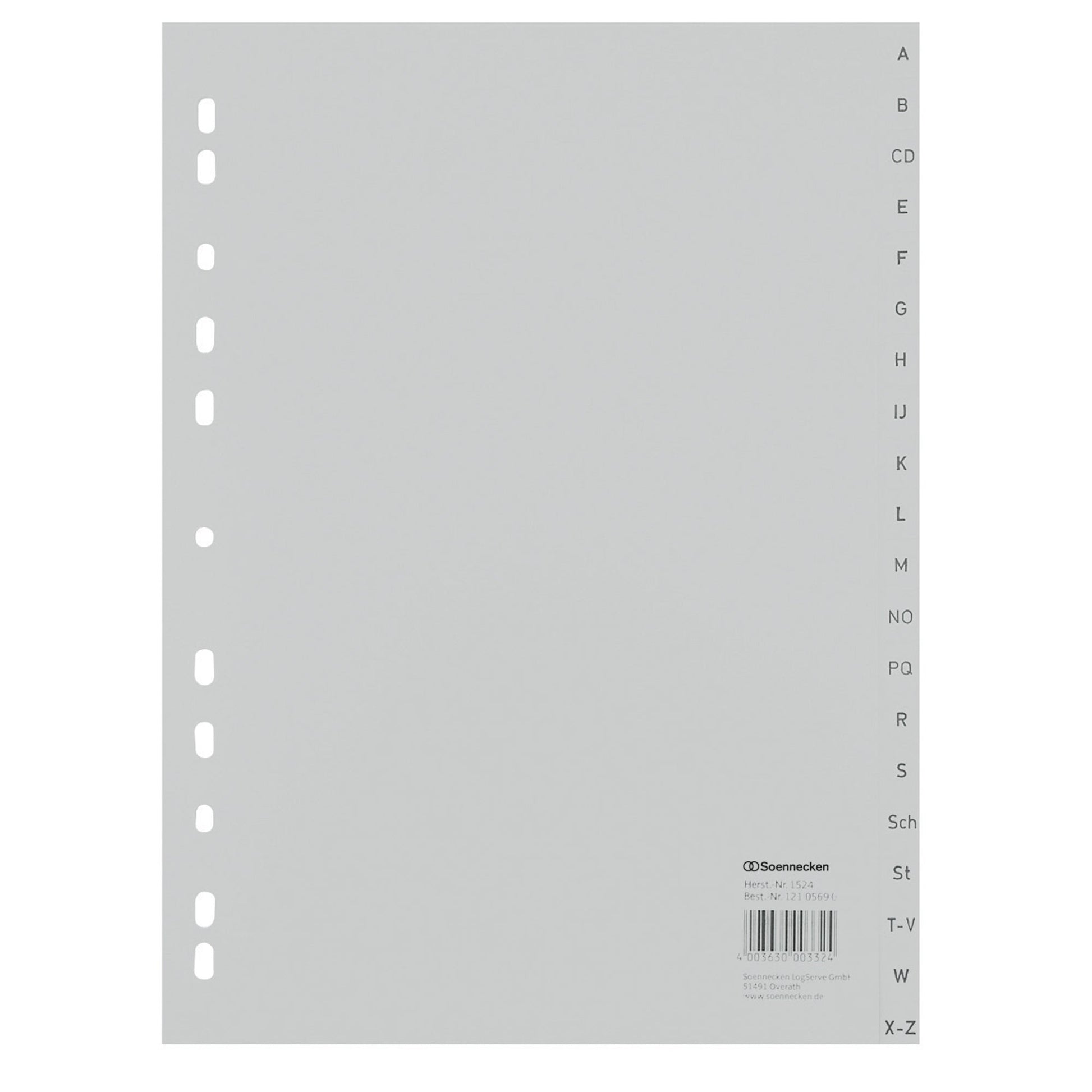 Bezeichnung: Soennecken A-Z Register DIN A4 Polypropylen grau 20 Registerblätter
