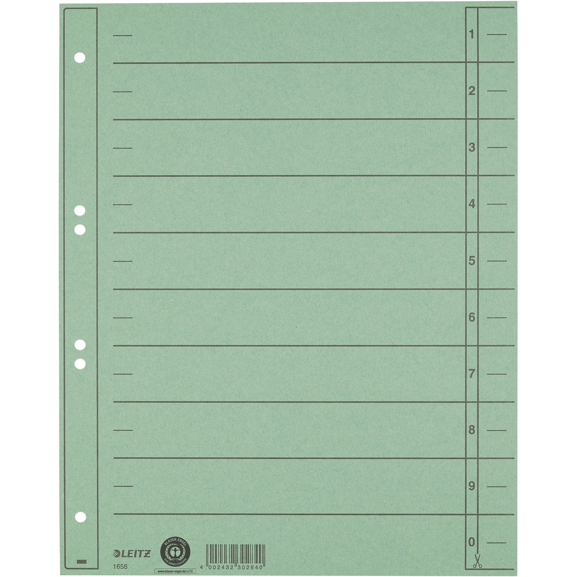 Bezeichnung: Leitz Trennblatt DIN A4, Überbreite Manilakarton, recycelt grün 100 St./Pack.