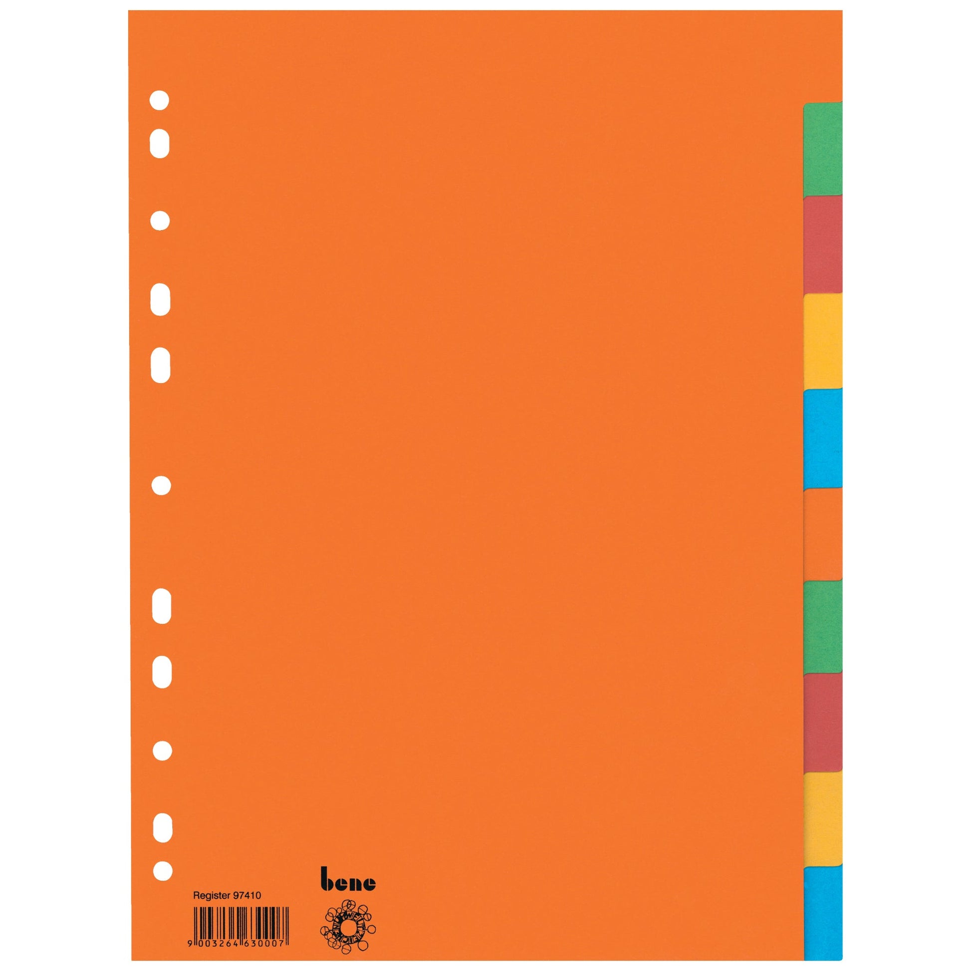 Bezeichnung: Bene Ordnerregister DIN A4 blanko 100 % Recyclingkarton mehrfarbig 10 Registerblätter