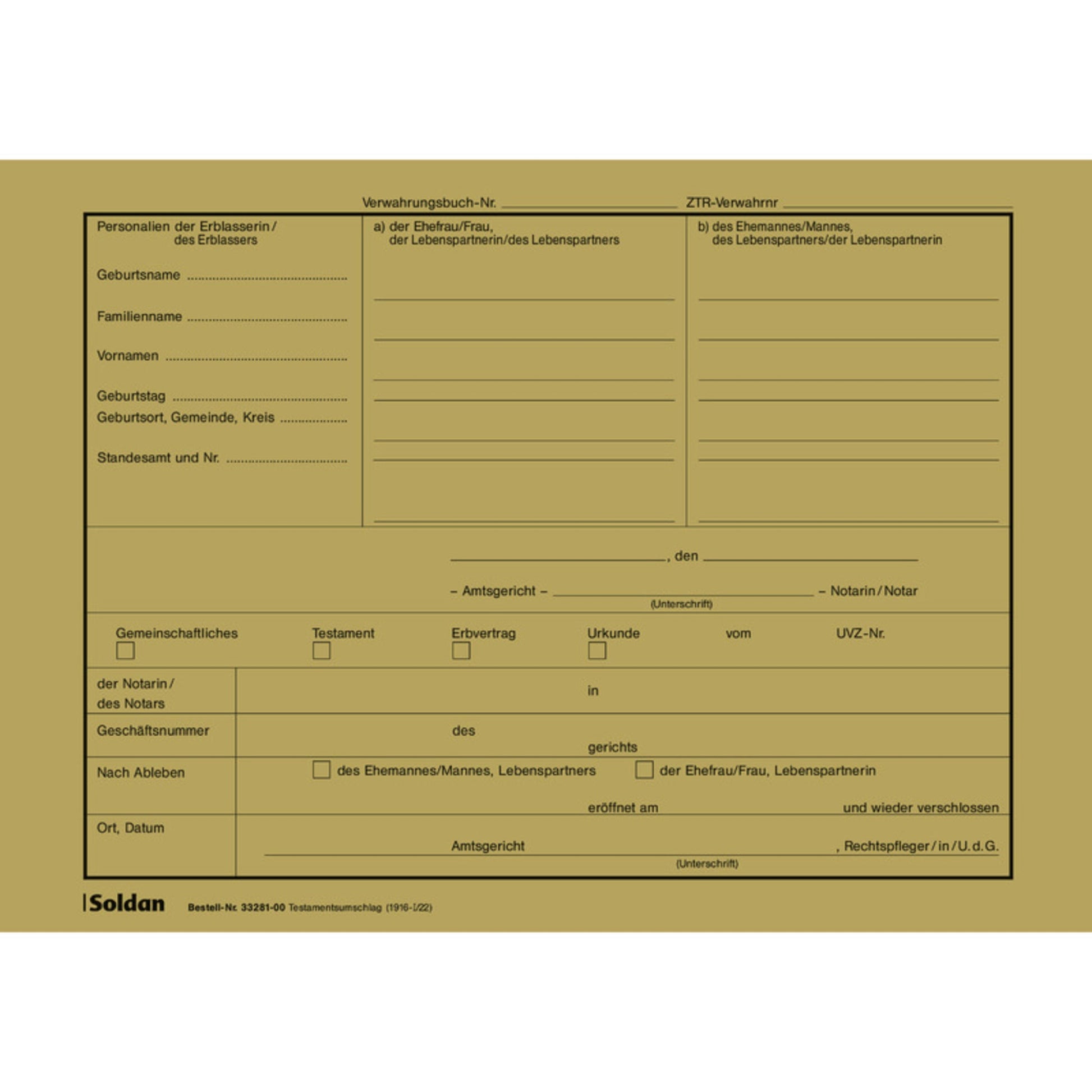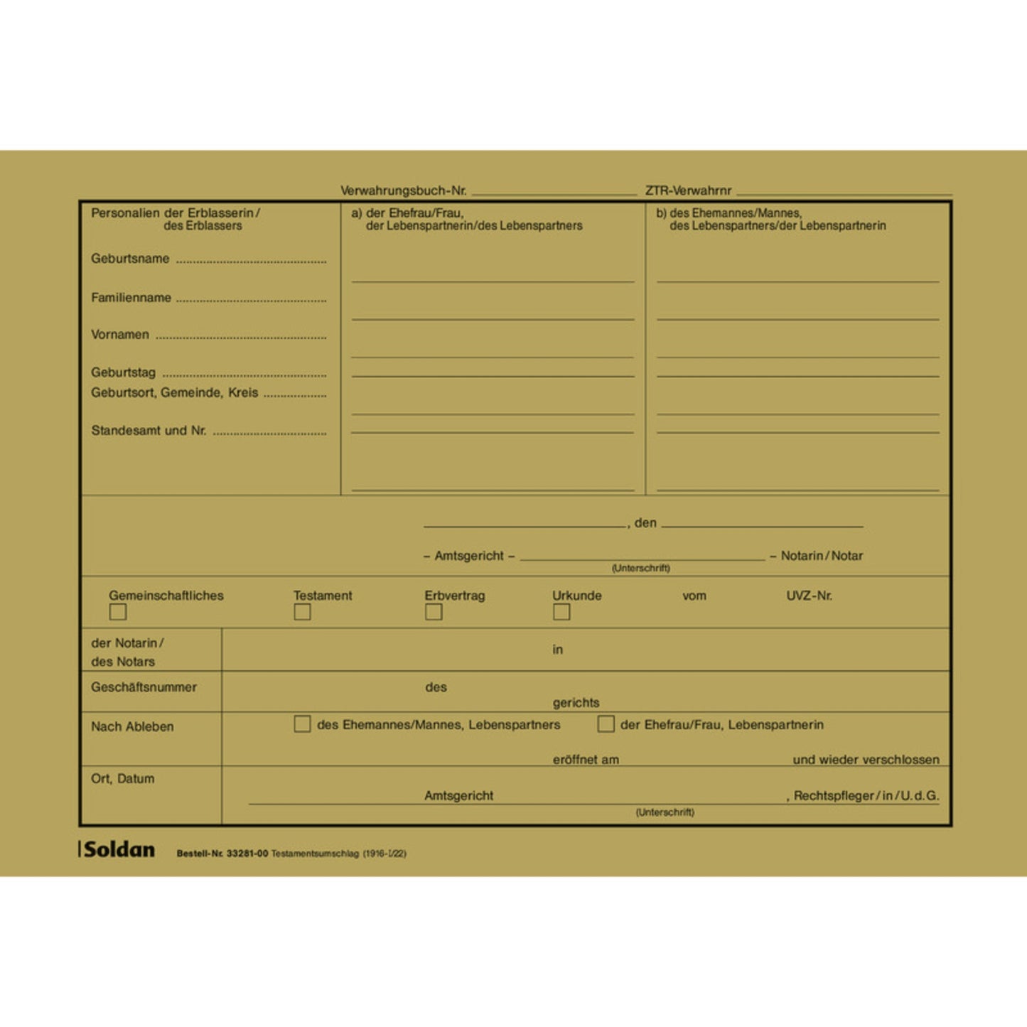 Bezeichnung: SoldanPlus Testamentsumschlag DIN C5 mit gummierter Klappe mit Aufdruck braun 50 St./Pack.