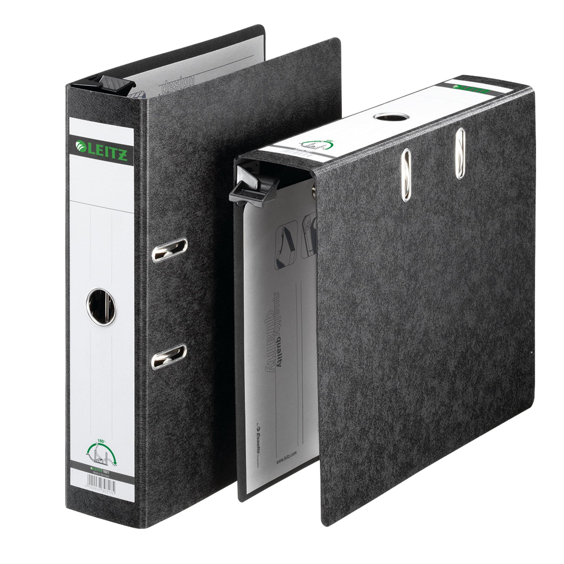Bezeichnung: Leitz Hängeordner 80mm DIN A4 Rückenschild: geklebt 180° Präzisionshebelmechanik Hartpappe, recycelt schwarz