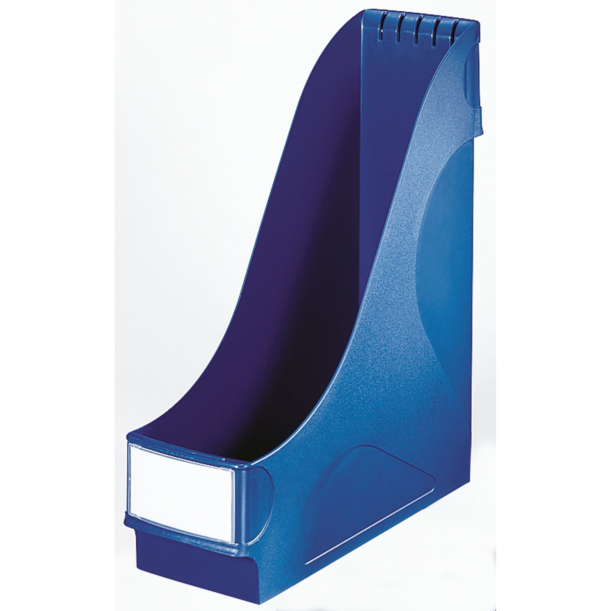 blauExtrabreit, sehr stabil und standsicher. Beschriftungsmöglichkeit an Vorder- und Rückseite. Boden geriffelt. Schlitze zum Einstecken von Trennwänden.