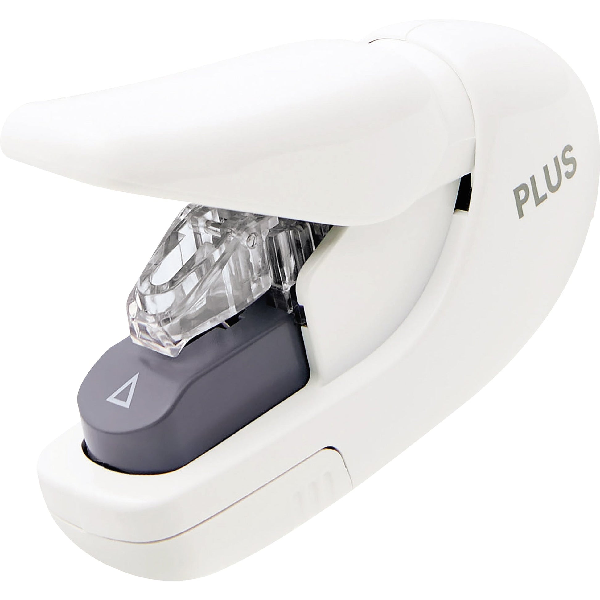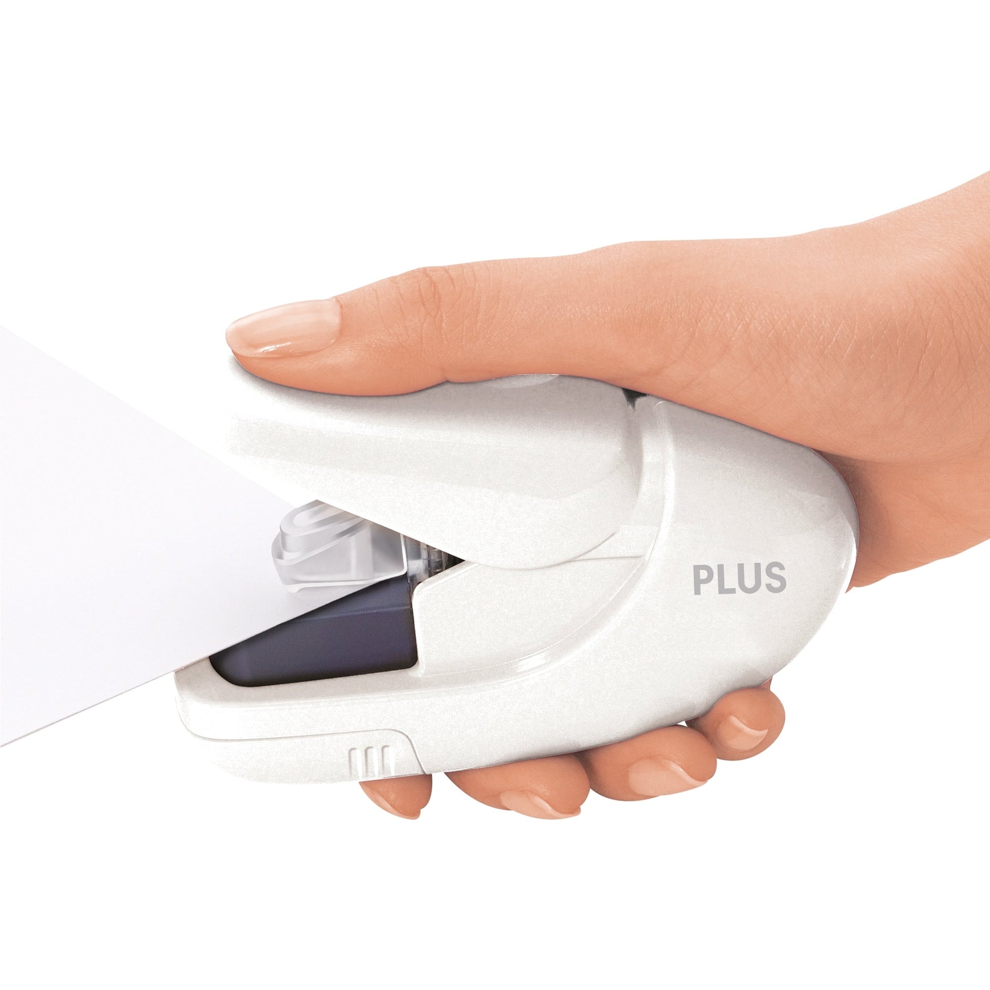 weißDer klammerlose Hefter von PLUS Japan ist innovativ, umweltfreundlich und praktisch. Sie brauchen nie wieder Klammern kaufen! Das PLUS Japan Heftgerät heftet Papier ohne Klammern. Kraftunterstützender Mechanismus ermöglicht müheloses Arbeiten. Der Hefter kann Papier nicht nur an den Ecken heften, sondern auch an den Seiten. Alle farblichen Teile sind aus recycelten Materialien. Es wird kein zusätzlicher Stahlverbrauch verursacht. Dokumente können direkt in einen Aktenvernichter eingeführt werden, ohne vorher Klammern entfernen zu müssen. Durch die ergonomische Form liegt der Hefter sehr gut in der Hand. Besonders sicher ist der Hefter für Kinder, da sie sich nicht an den scharfen Klammern verletzen können. In der Nahrungsmittelindustrie und Krankenhäusern ist die Benutzung von Heftklammern oft verboten, daher ist dort die Anwendung des klammerlosen Hefters ideal und sicher.