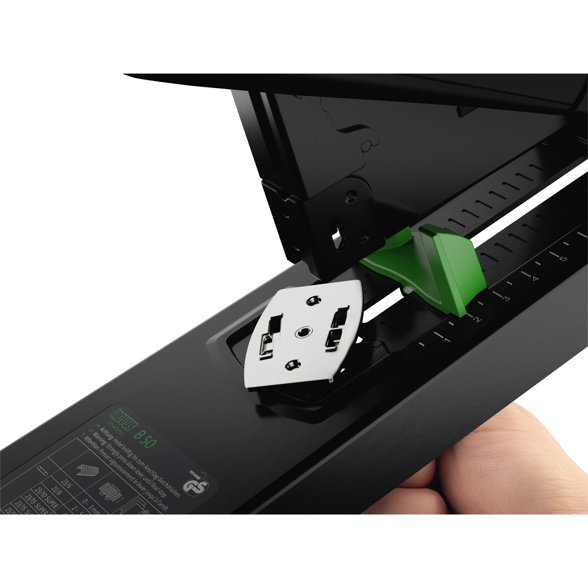 Bezeichnung: NOVUS Blockheftgerät B 50 re+new 23/6-17 SUPER fest/bypass 140 Bl. (80 g/m²) Metall/Kunststoff, 81 % recycelt schwarz