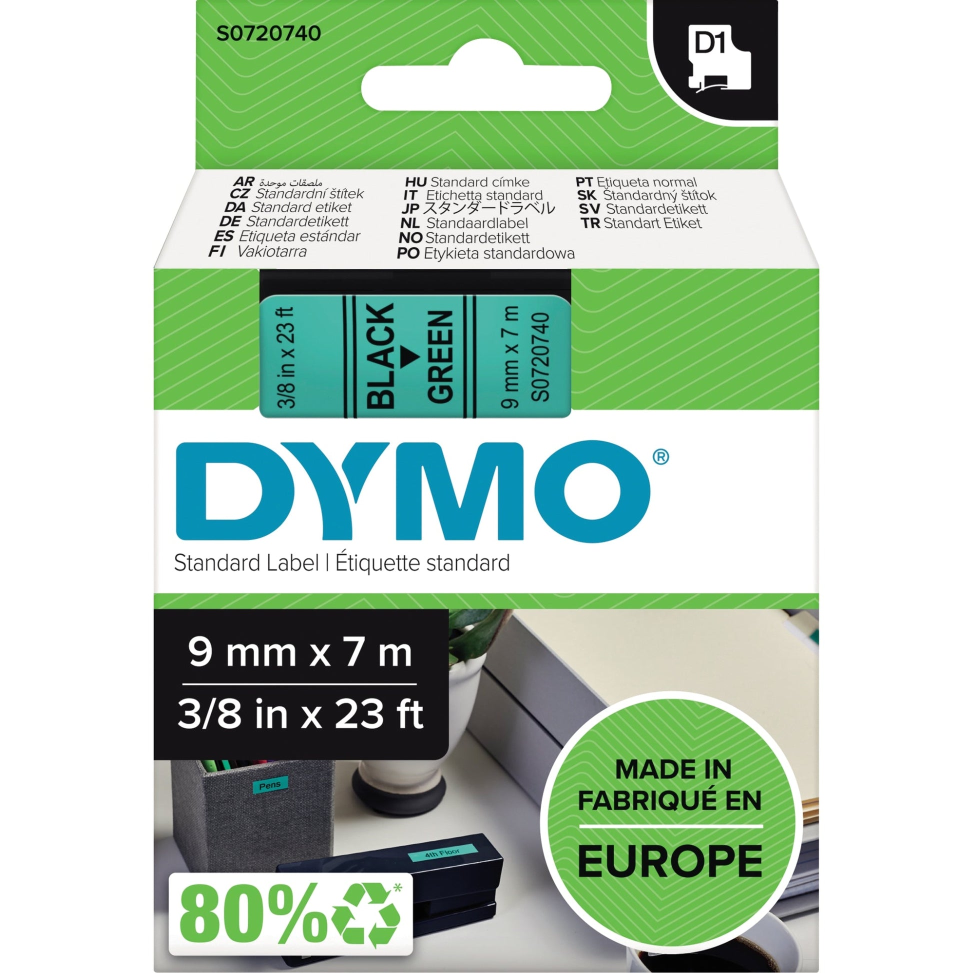 Bezeichnung: DYMO® Schriftbandkassette 9 mm x 7 m (B x L) grün schwarz